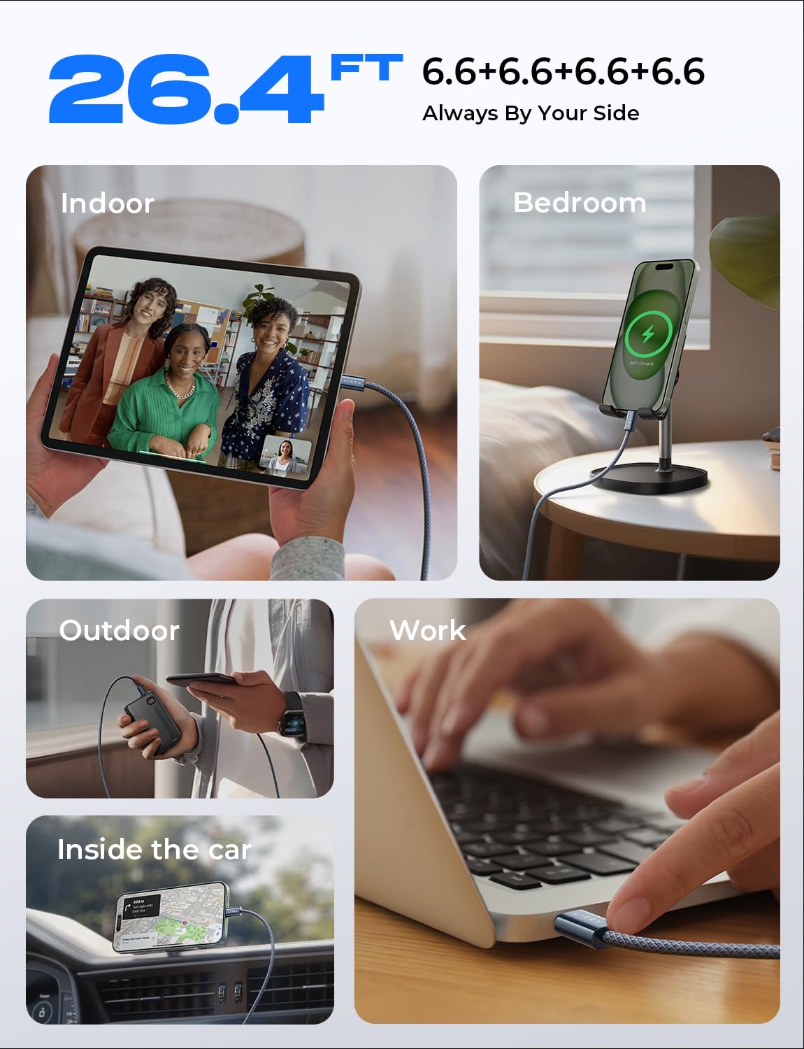 【Home/Office/Travel: Flexible 4-Pack Configuration】: You're not just buying one apple usbc cable, but a complete charging solution! The fantastic value combination of four 6.6FT (approx. 2-meter) cables eliminates the hassle of repeatedly plugging and unplugging or carrying one cable everywhere.The 6.6FT length provides ample room for movement, making it easy to charge by the bedside, on the sofa, or in an office corner.