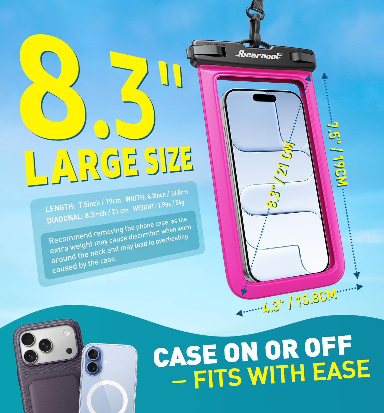 CASE FRIENDLY: With a size of 8.3 inches, the waterproof phone pouch can fit most cell phones with or without a case, providing double insurance to your phone