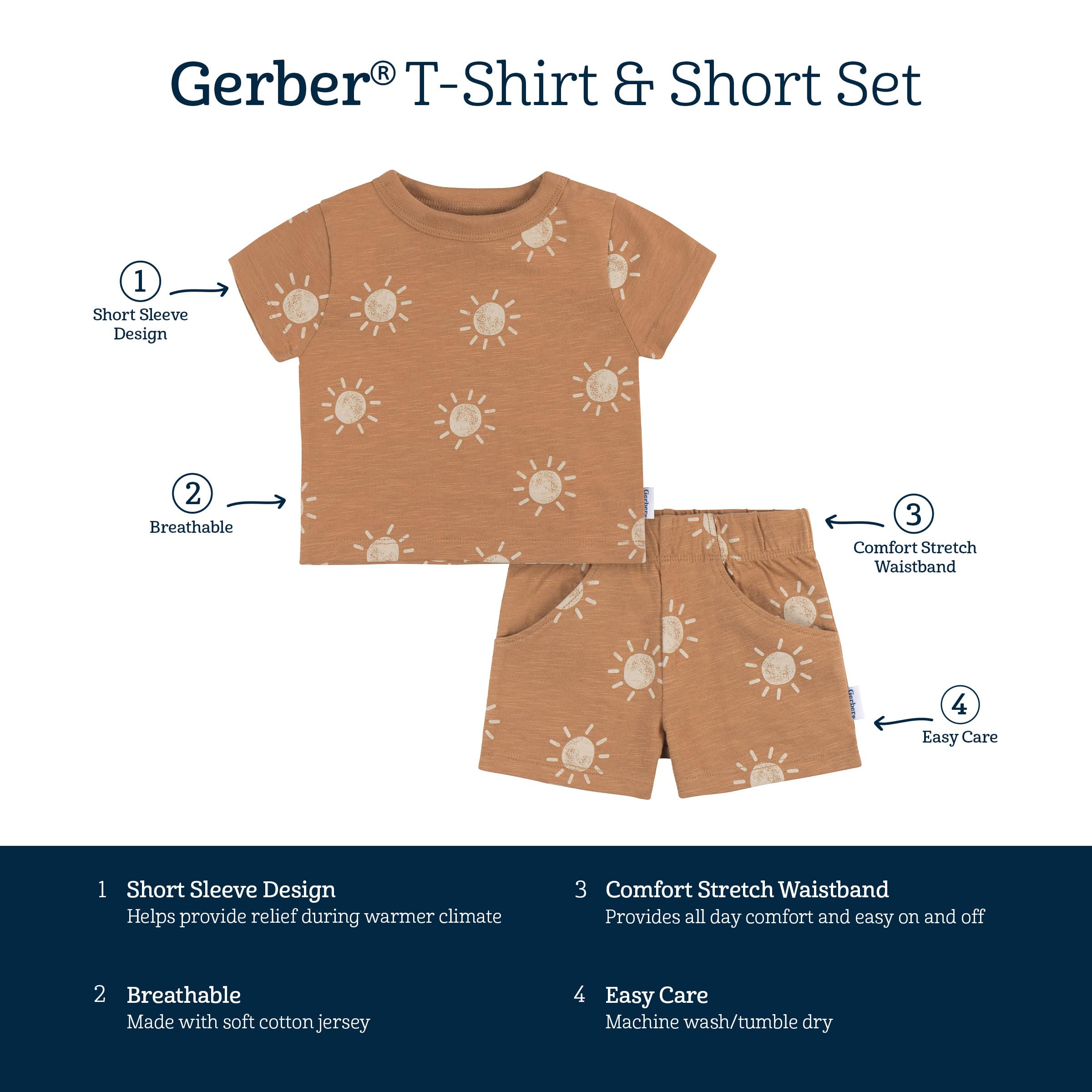 Description Get your toddler boy ready for sunny adventures with this T-shirt and shorts set. Crafted primarily from cotton with spandex for a comfortable stretch, it's the perfect outfit he'll want to keep on all day. Whether it's playdates or running errands, this toddler boy outfit combines the best of style and comfort for wherever the day takes you. With its soft, inviting texture and adorable pattern, he'll look cute and feel great. And with easy machine washing for stress-free care, it’s simple to keep this outfit ready all season long.