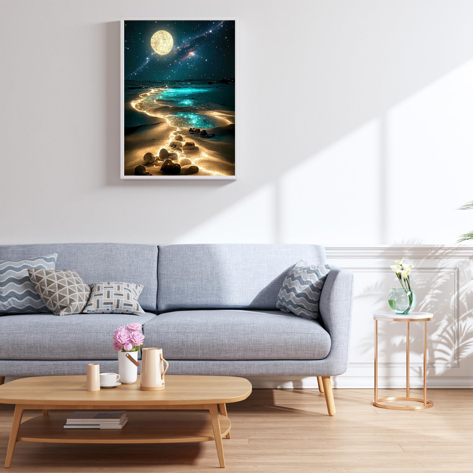 Adult Puzzles 1000 Pieces: Our Moonlight Jigsaw Puzzles for Adults feature 1000 white puzzle pieces, packaged in an exquisite color box with reference poster. The completed 1000 piece puzzle for adults measures 27.6×19.7 in/70×50 cm, making it a perfect size for framing and display as wall decor.