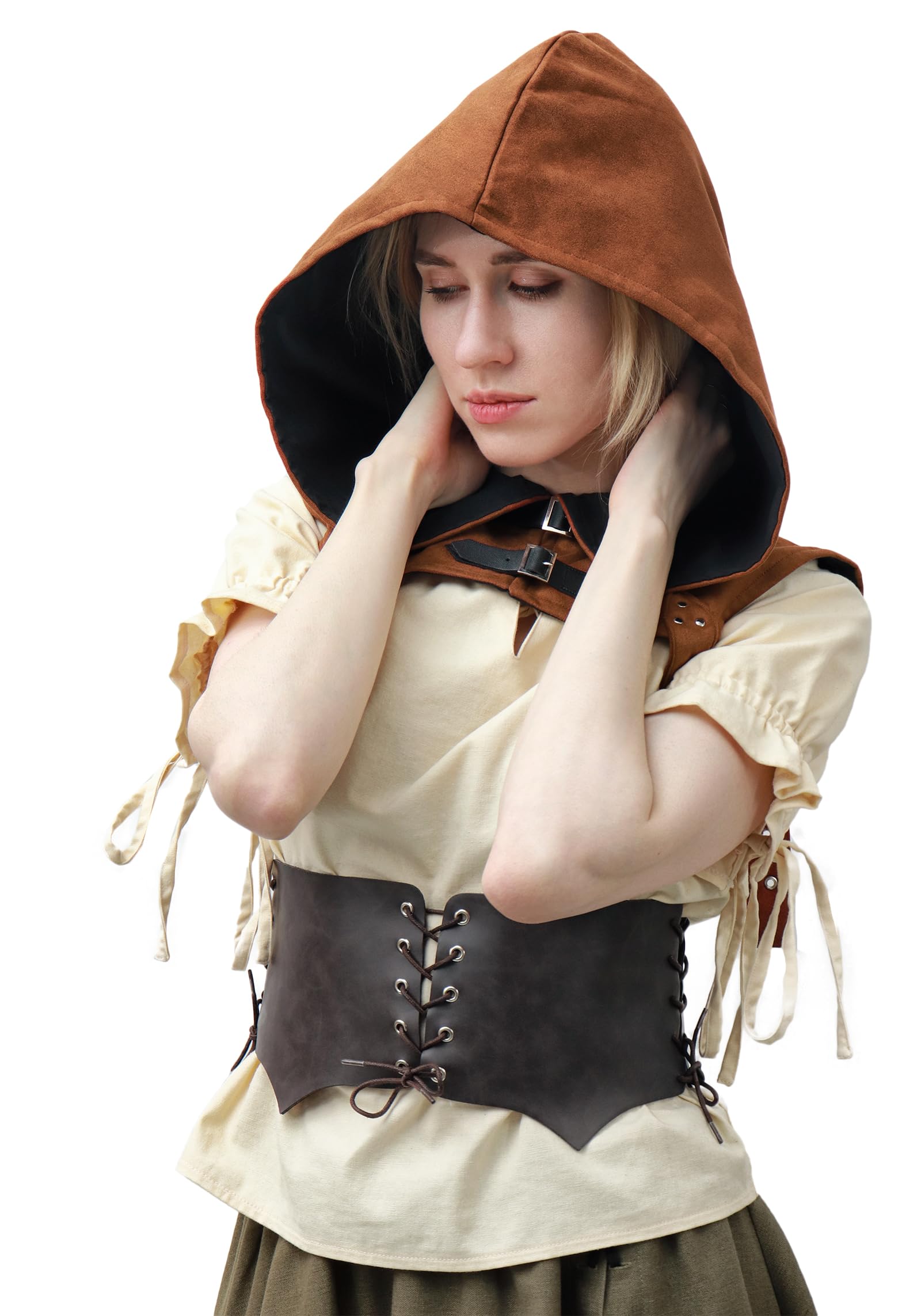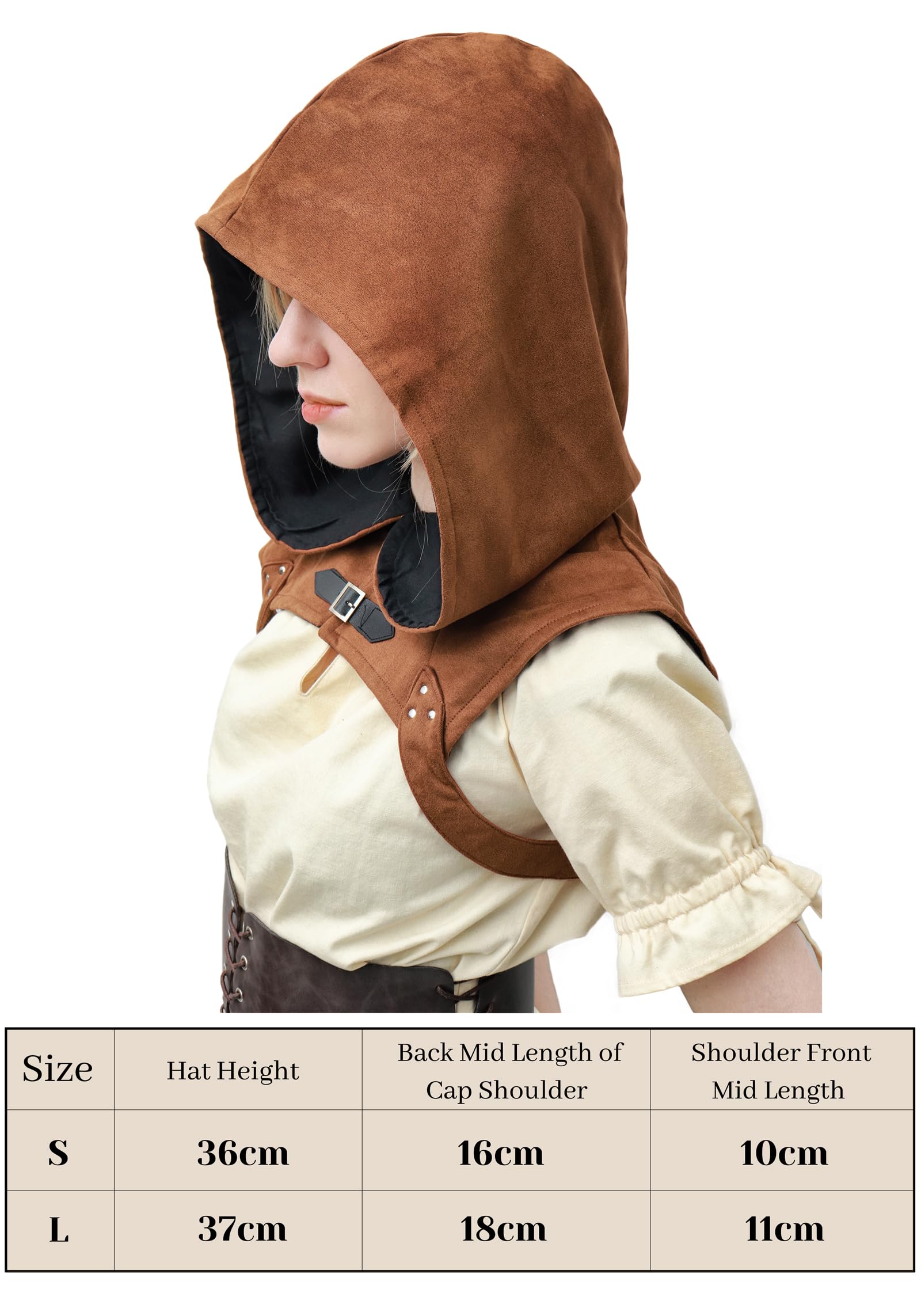 Easy to Wear: This medieval cloak cap is fixed with adjustable length straps and buttons. This design meant that the medieval hood would not be easy to slip off, and the button design makes the cloak more cool and fashion