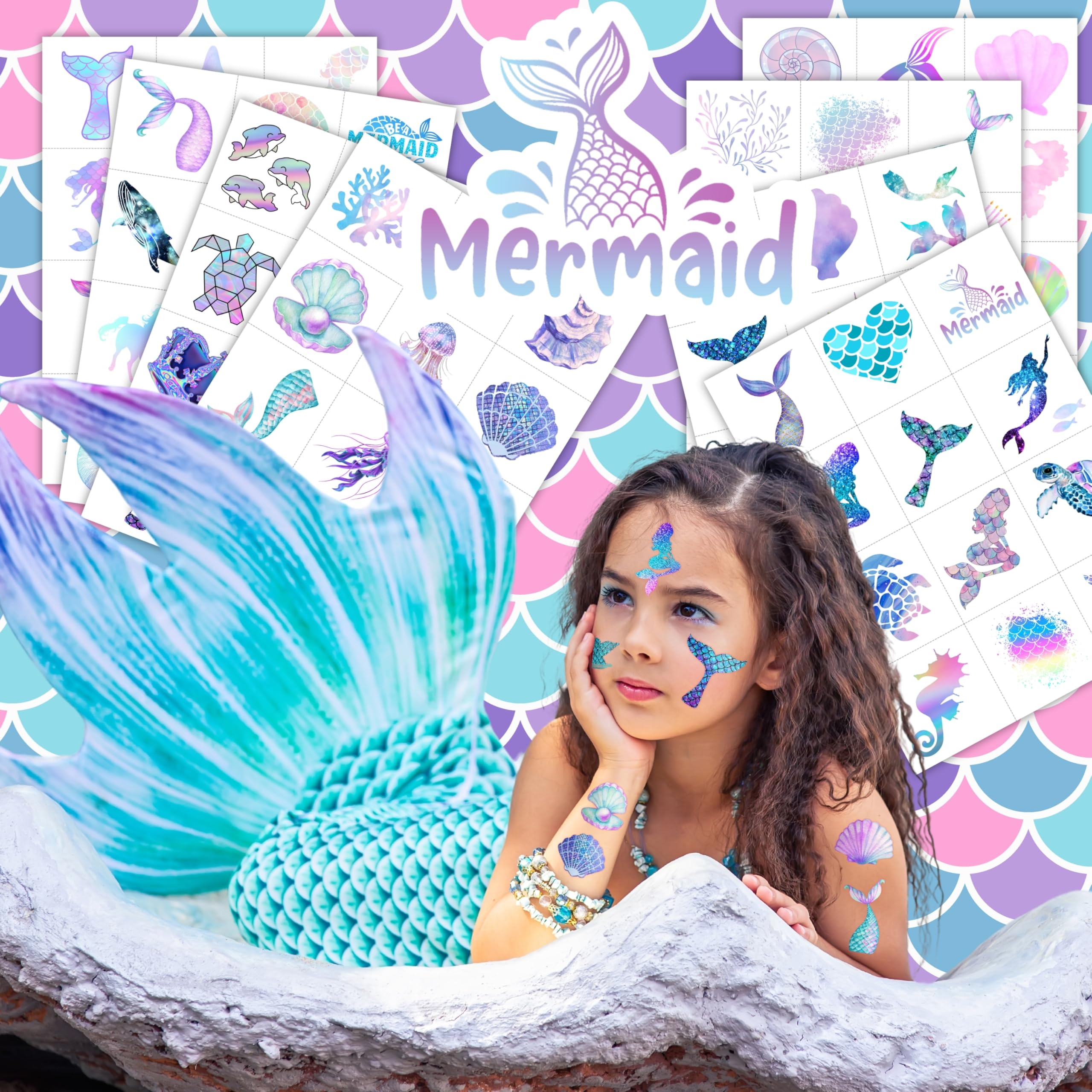 🎁【GREAT GIFT IDEAS FOR MERMAID PARTY SUPPLIES & DECORATIONS】: Add a magical touch to your child's birthday party with these Mermaid-themed pre-cut tattoos! Featuring under-the-sea elements, seashells, dolphins, sparkles, pink, purple, and little mermaids, these tattoos perfectly complement any mermaid party. They're a fun and thoughtful gift that kids will love!