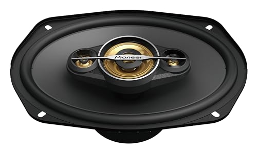 Upgrade your car's audio system with the Pioneer TS-A6971F 4” 4-Way Oval Car Speakers. Sporting a sleek black color with gold accents, these speakers are designed to deliver enhanced sound quality and performance, allowing you to enjoy your favorite music like never before. These speakers are a popular choice for many car models. Included with the coaxial system are 6” x 9” multi-fit installation adapters that expand flexibility and improve acoustic performance. Also included are tweeter mounts for surface mounting, flush mounting and specially designed multi-fit adapters for mounting in original equipment (OE) tweeter locations. With the integrated/in-line crossover network, you increase installation flexibility without the need of an outboard module. The included Pioneer multi-fit installation adapters can be easily modified to fit a variety of different applications by simply breaking off or cutting off the easy to remove tabs until the shape and mounting points match the original speaker. Replacing your factory speakers has never been easier. With a maximum power handling of 600 watts and a continuous power handling of 100 watts, the TS-A6971F can handle higher power levels, allowing you to enjoy louder and more dynamic audio. The speakers are designed to deliver impressive volume levels without sacrificing clarity or causing distortion. Upgrade your car's audio system with the Pioneer TS-A6971F 4-Way Coaxial Car Speakers. Experience improved sound quality, enhanced bass, and clear vocals, bringing your music to life on the road. Enjoy the Pioneer quality and elevate your in-car audio experience.