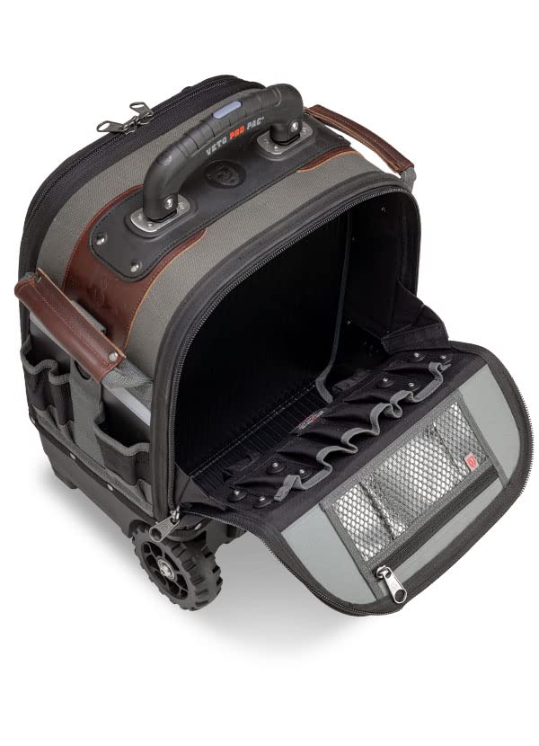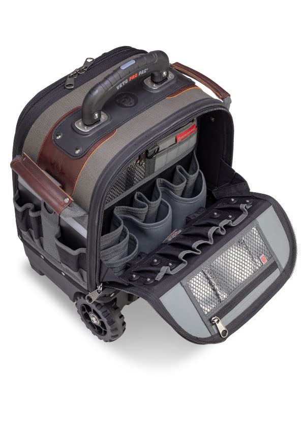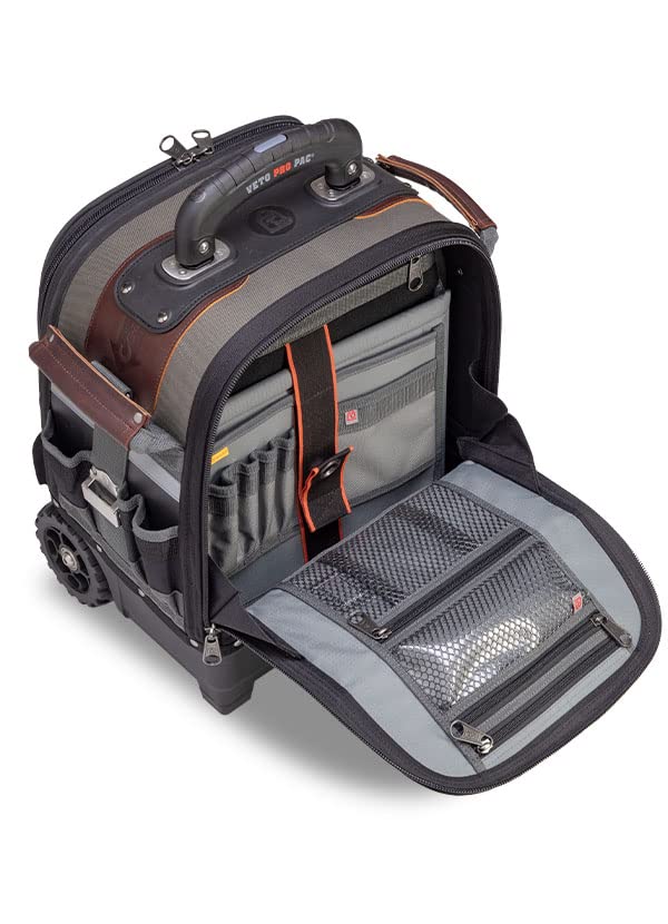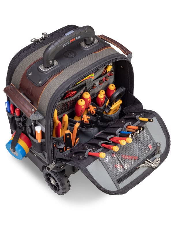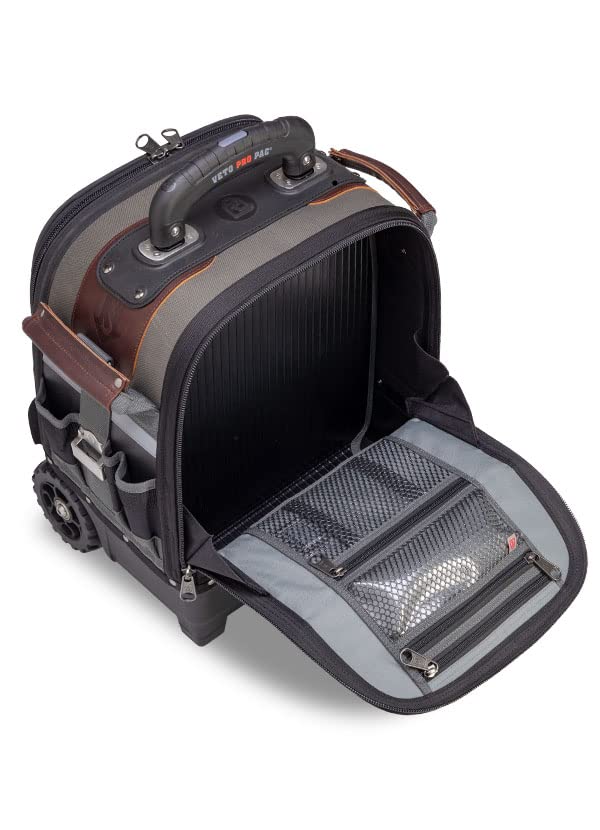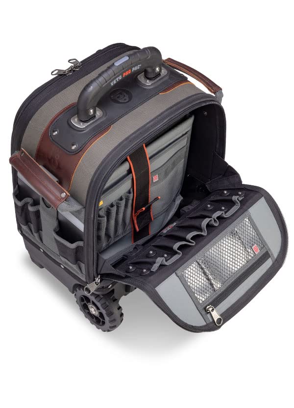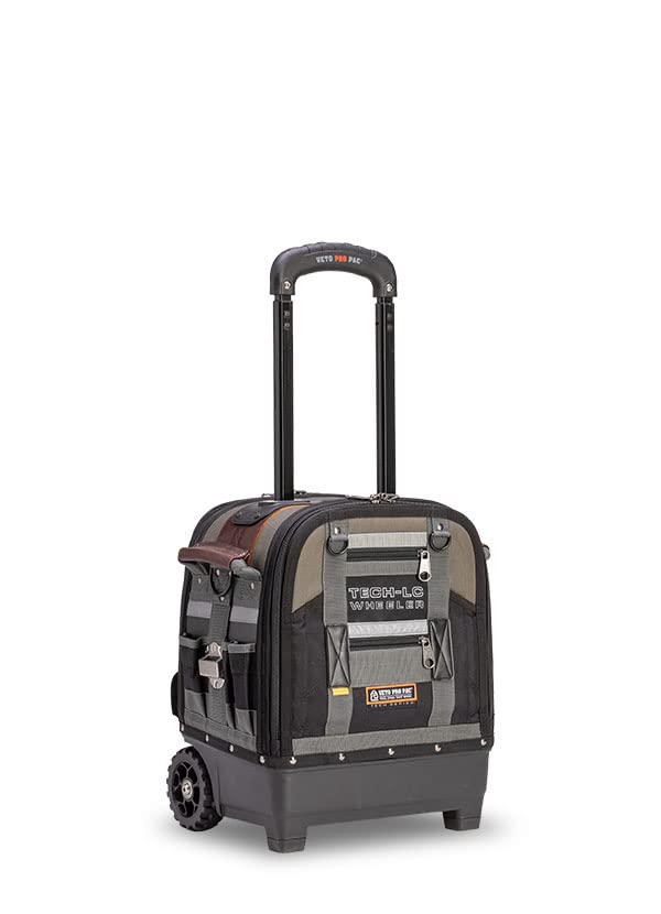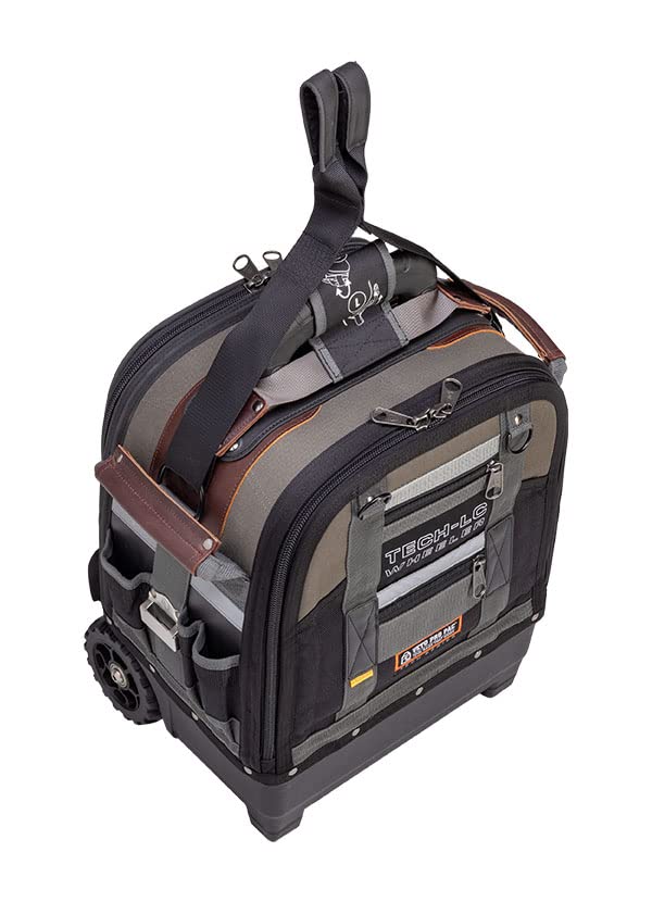 The TECH-LC WHEELER is a rolling version of the tried and true TECH-LC tool bag. Featuring additional volume capacity and Veto Pro Pac’s proprietary V-SWAP system, the TECH-LC WHEELER provides a versatile tool storage, organizing and wheeled transport system. The bag comes with innovative V-SWAP removable Tool (mandatory) and Meter pocket panels to allow for customization. While the Tool panel must remain in the bag (on either side of the bag). the Meter panel is easily swapped out with optional Laptop and Bulk Storage panels, which are available and sold separately.