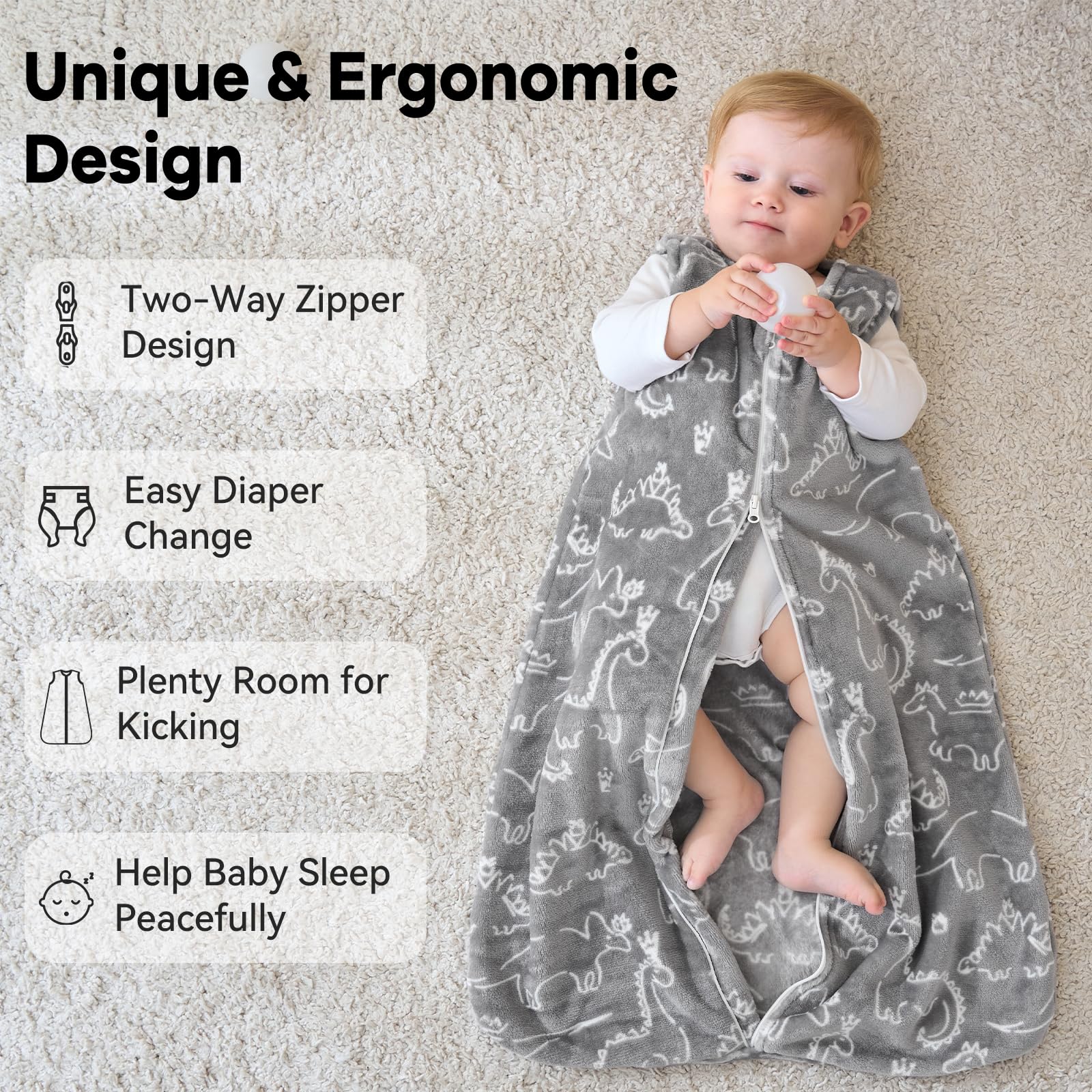 Safe Sleep - Our fleece baby sleep sack are made of comfortable and high quality 100% microfiber polyester, providing a gentle, skin-friendly touch for your baby's sensitive skin. Certified by the Consumer Product Safety Commission(CPSC), these baby sleeping bags ensure a secure and safe sleeping environment for your little one.