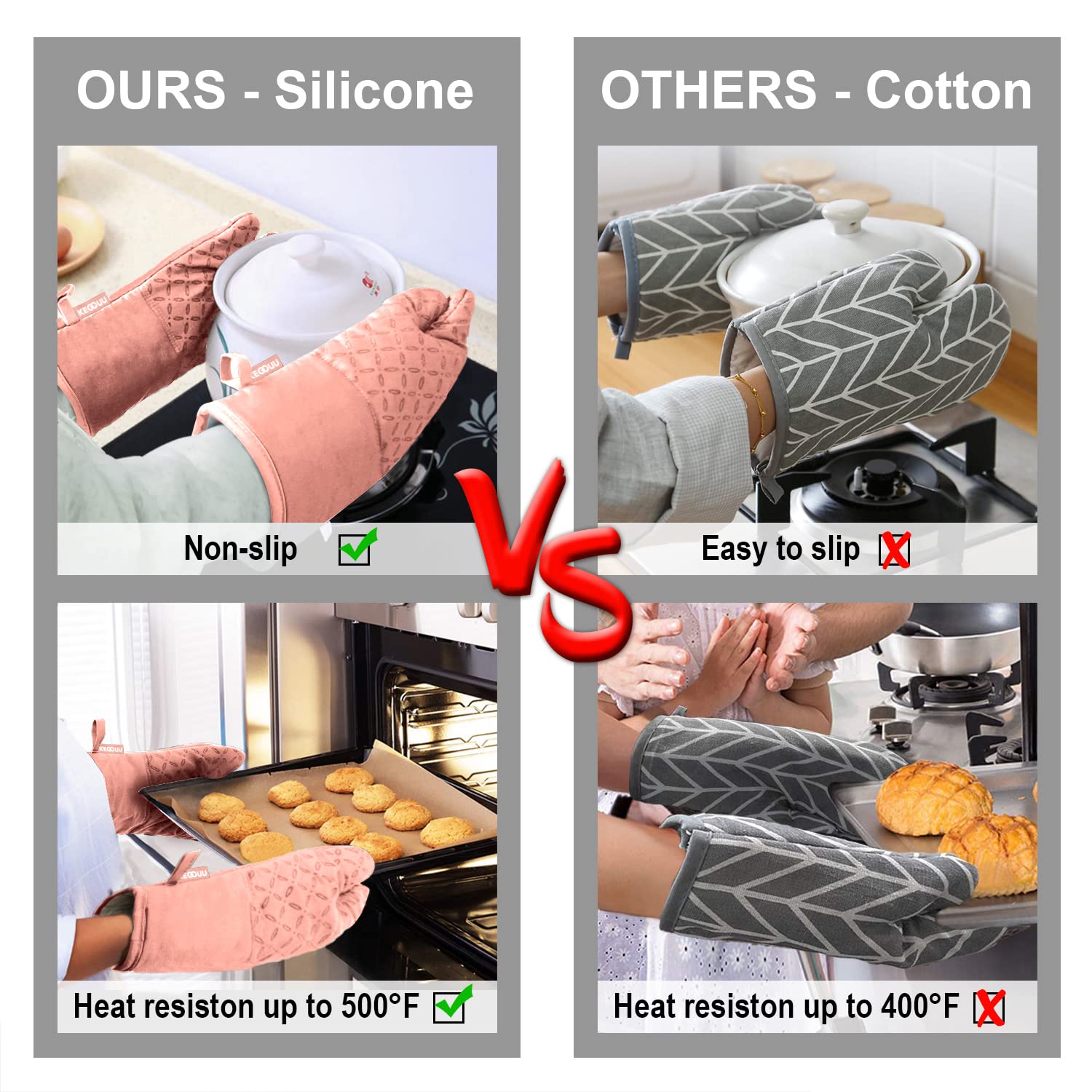 500°F HEAT RESISTANT &NON-SLIP - This oven mitts heat resistant 500 degrees because of the durable construction so it can effectively keep you protected from burning while you enjoy cooking and grilling. Enhanced with anti-slip silicone design to provide a more robust, non-slip grip that can be held securely when handling the kitchen utensils