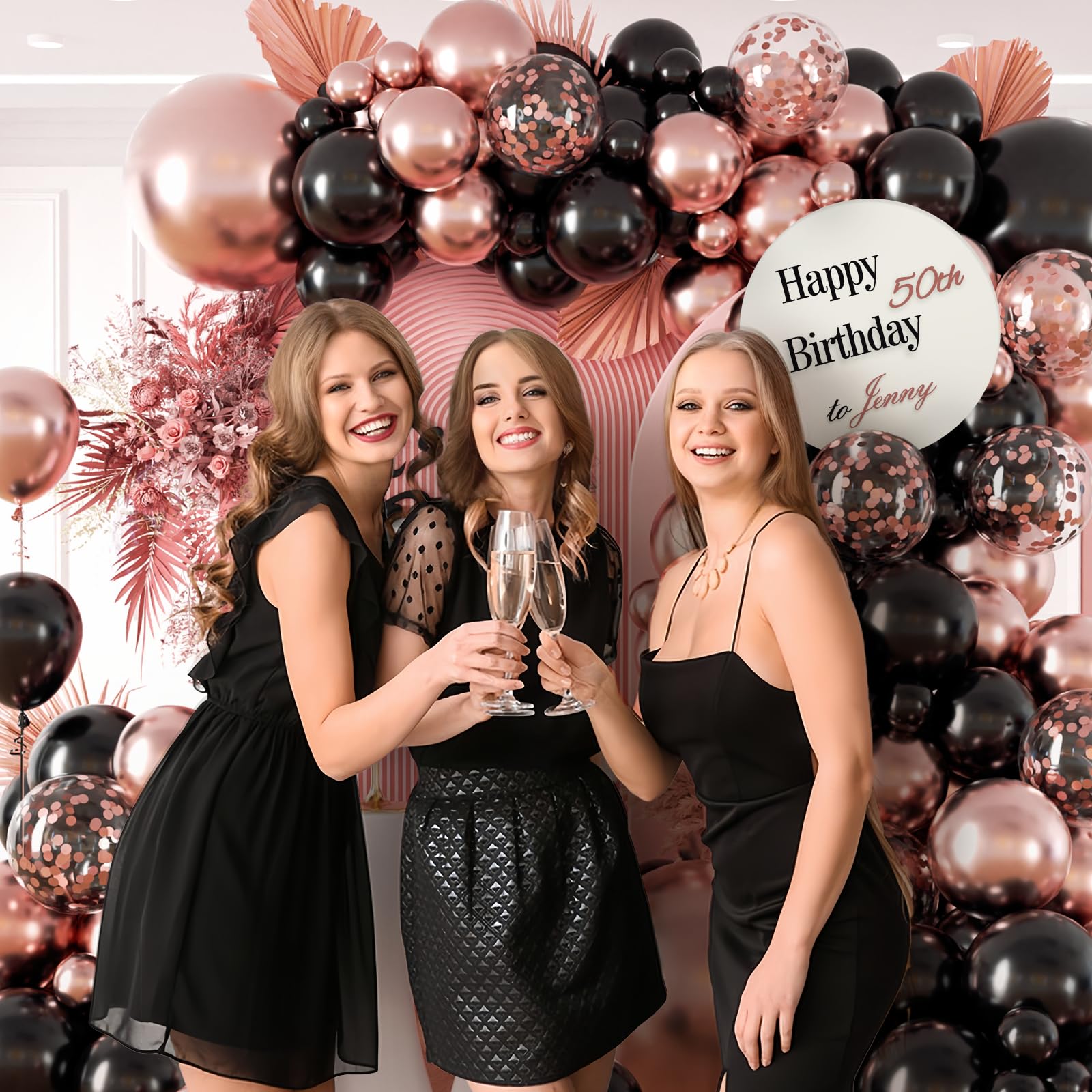 Great Quality: The rose gold and black balloons is made from premium latex, ensuring durability. Latex balloons can be inflated with air or helium. Friendly Reminder: Please do not overinflate the balloons beyond 90% of their volume, and avoid rubbing them against rough surfaces or overheated objects to avoid sudden bursting