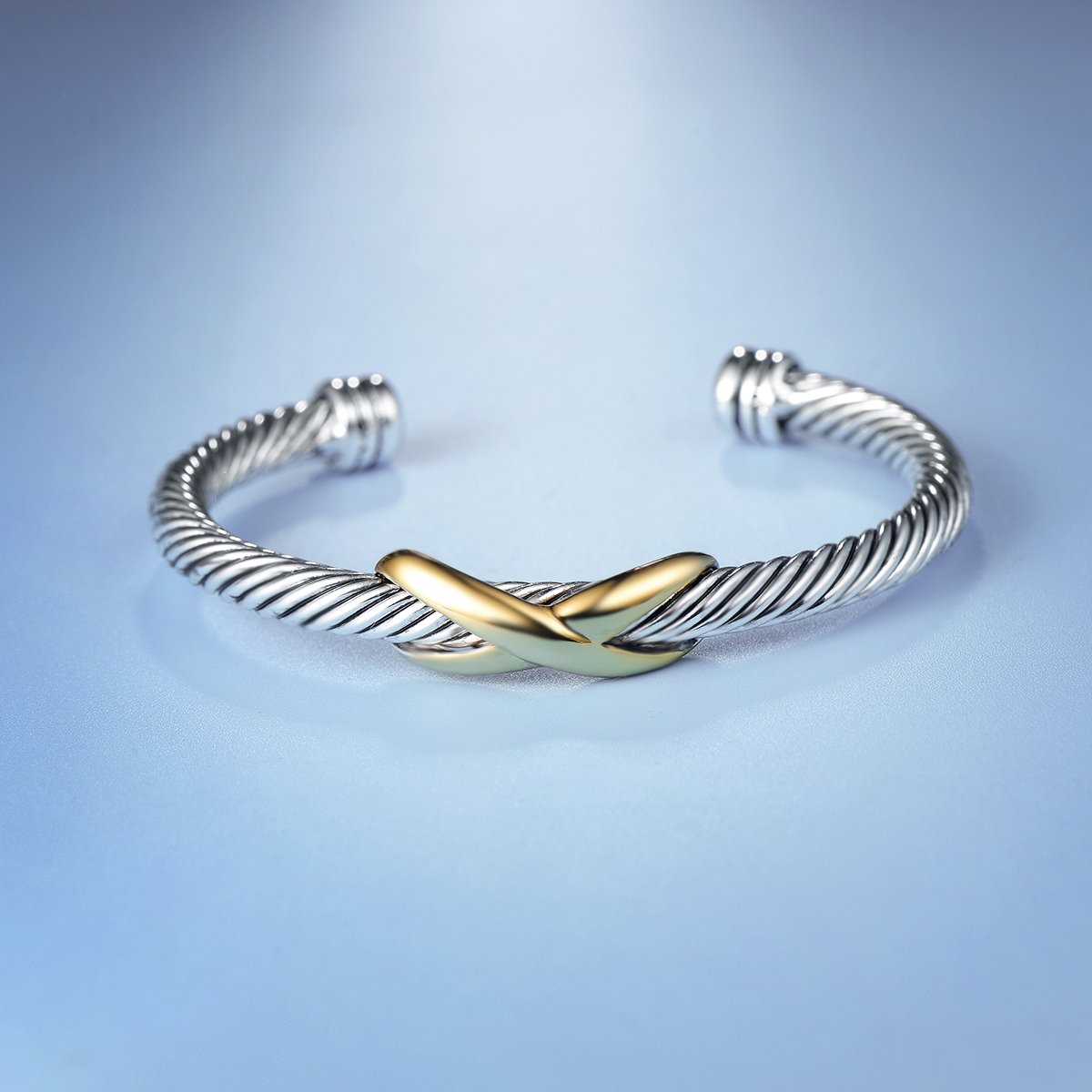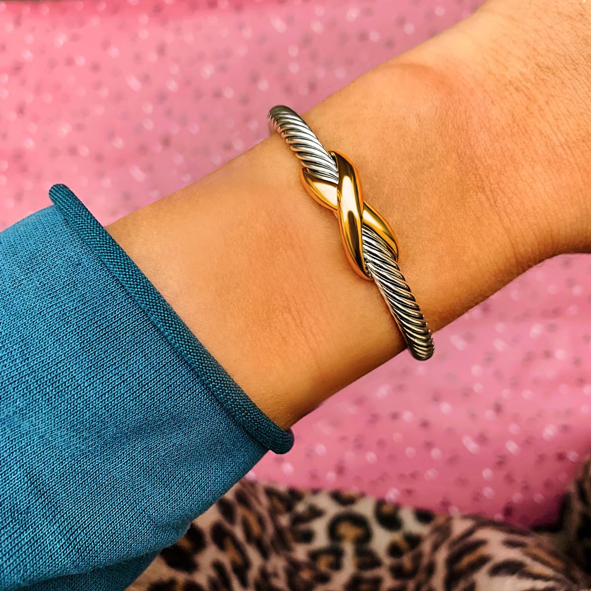 ๐๐๐ Jewelry Unique Twisted Cable Wire Two Tone Criss Cross X Shape Infinity Open Cuff Bangle Bracelet