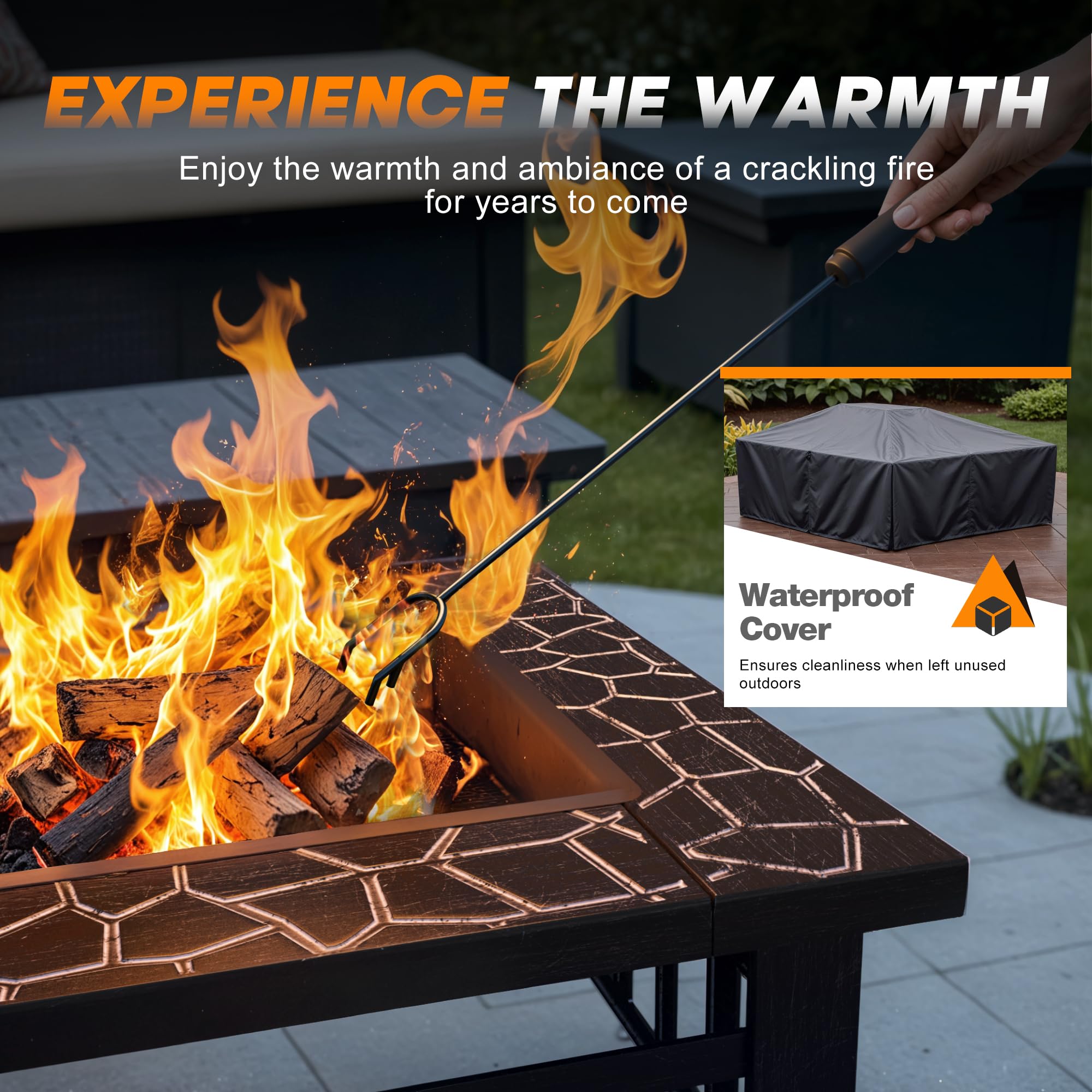 [ Top-notch Material ]: Outdoor fire pit is made of heavy-duty steel frame treated with high-temperature coating, and comes with a waterproof cover to ensure long-lasting durability outdoors while also preventing rust