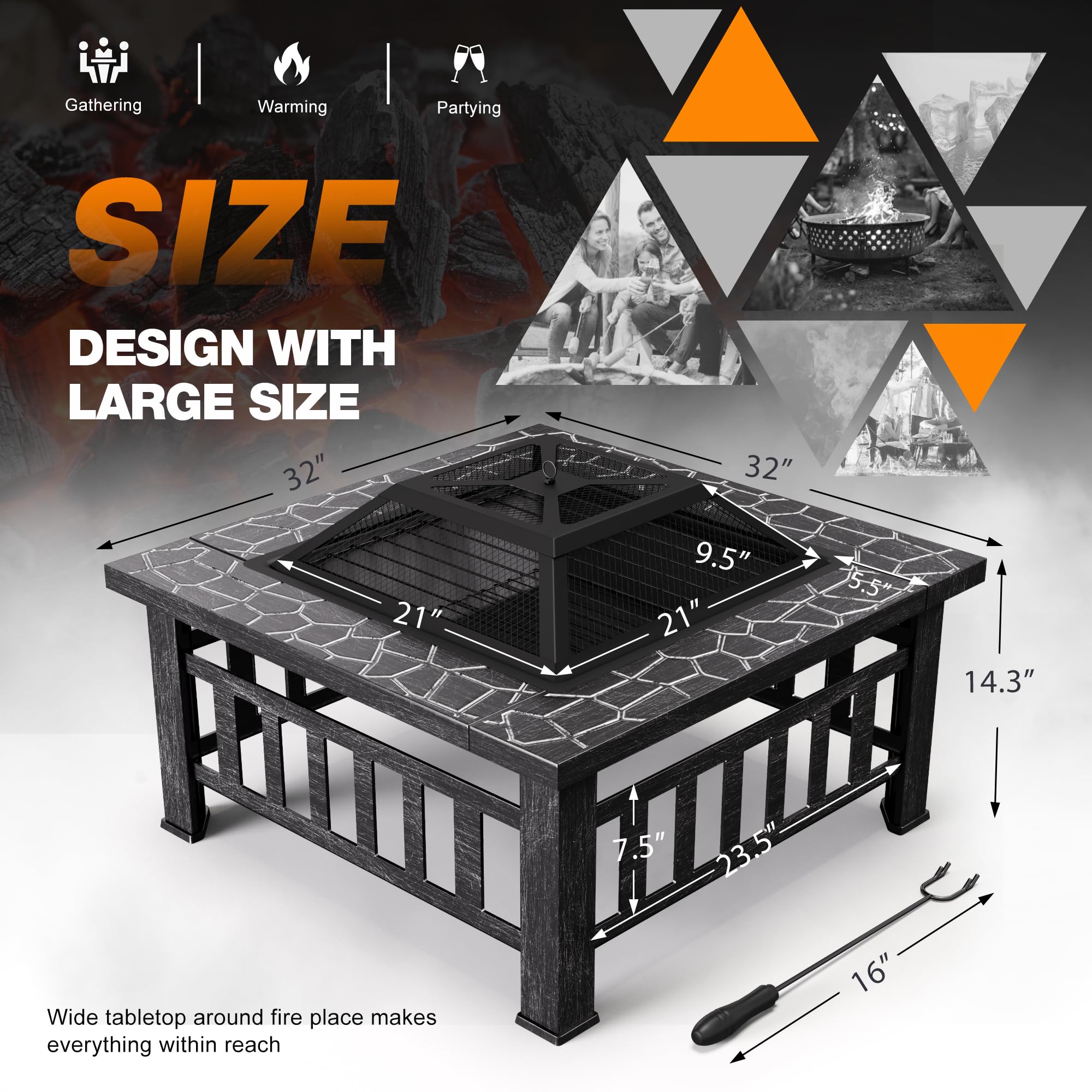 [ Reliable Security ]: Firepit table features square design with sturdy legs for stability, while the mesh spark screen and poker provided effectively prevent sparks from flying and safely move the grill