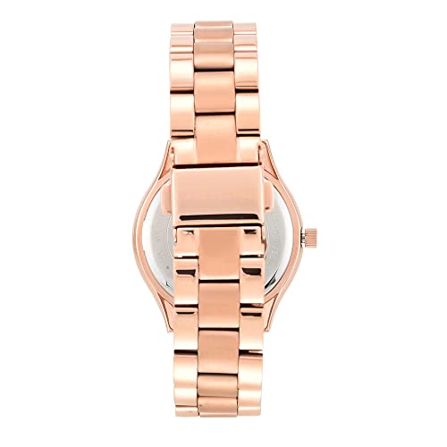 Watch Band: Rose gold-tone stainless steel bracelet band; 18mm band width; links can be removed for a customized fit