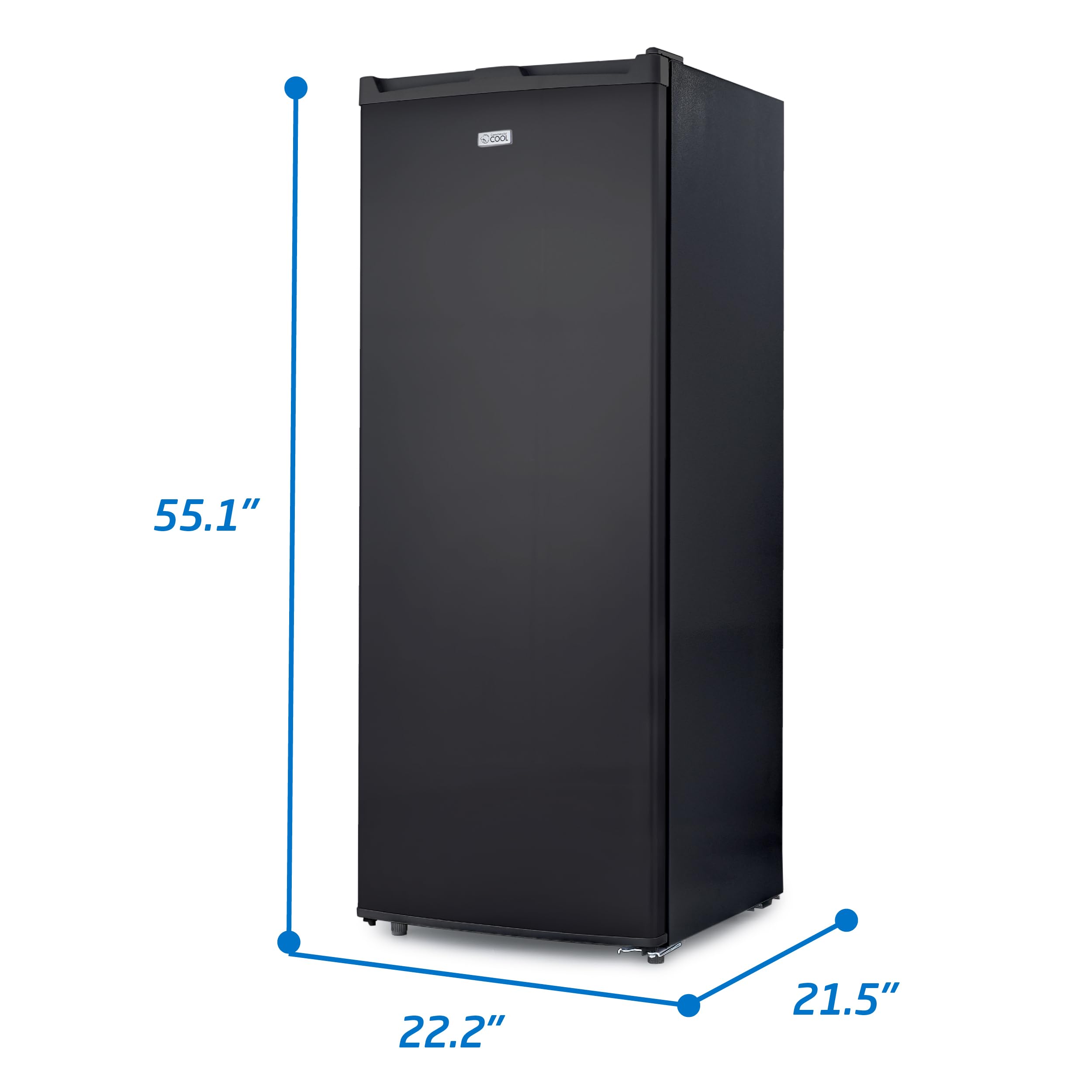 With an impressive capacity of 6 cubic feet, this COMMERCIAL COOL upright freezer features an adjustable thermostat so your food is always stored at the correct temperature. Our outstanding deep freeze (21.5” x 22.2” x 55.1”) opens from the front for easy access with a convenient reversible door. The space-saving, flat back design of this fantastic freezer and small footprint (92.6 lbs.) allows you to place in smaller areas of your home, office, or garage. With 5 full-width steel wire shelves, you can organize frozen meals, snacks, and ice seamlessly. Also included are adjustable leveling legs to ensure your large freezer sits evenly. This deep freeze is ETL energy and safety certified, uses R600a, and is delivered in ISTA-6A packaging. Our chest freezer 6.0 cu. ft with manual defrost ensures you’ll never run out of frozen goods again!