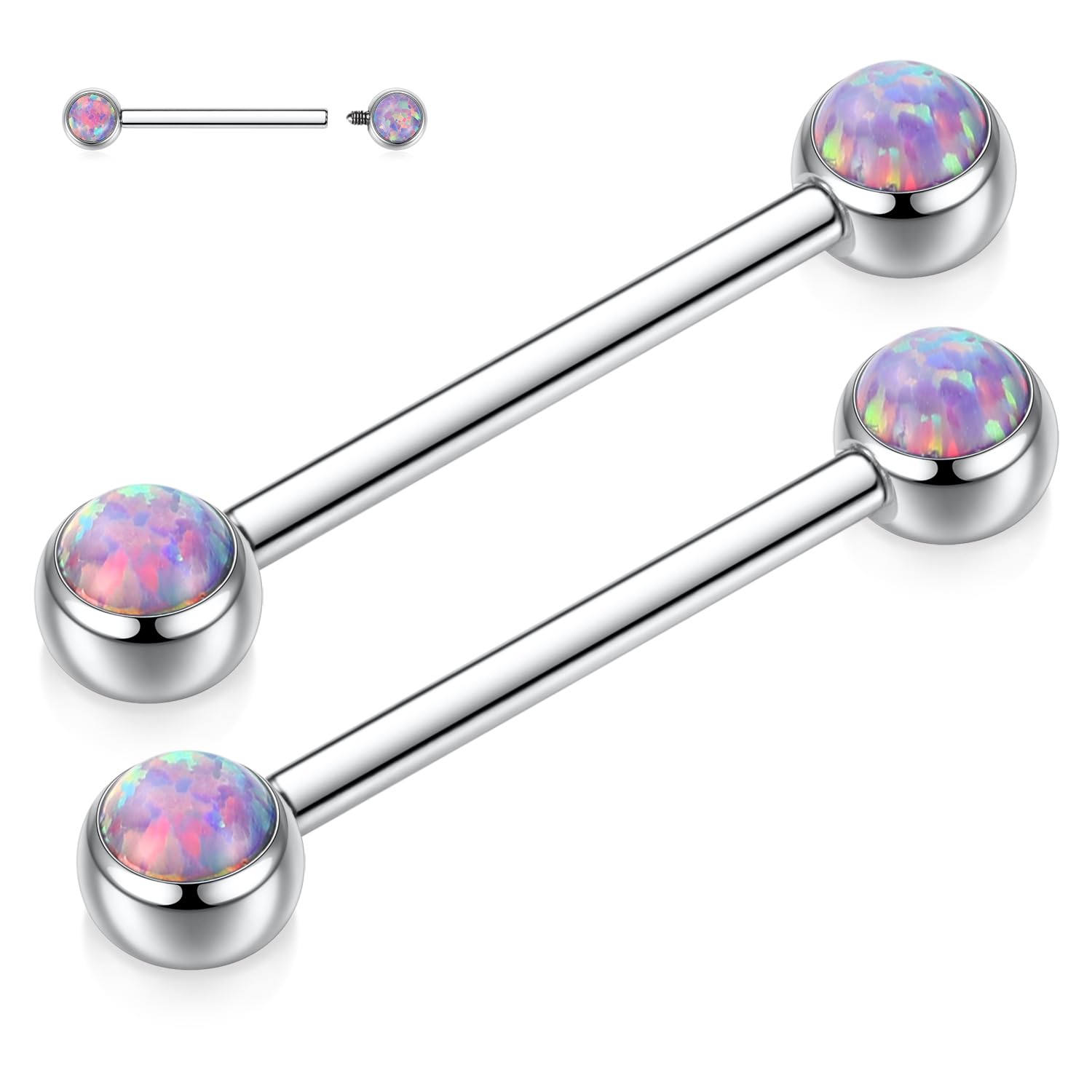 Attractive Style: The nipple ring with shiny cute purple opal on both side,what's more both side can be push back,make your nipple piercing more attractive.