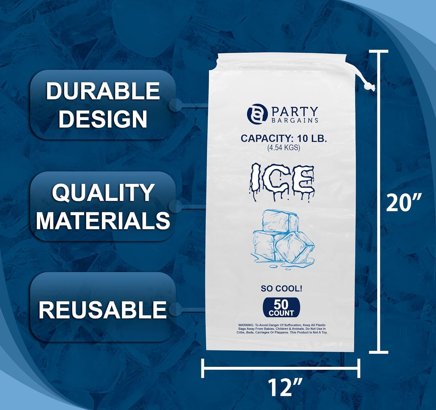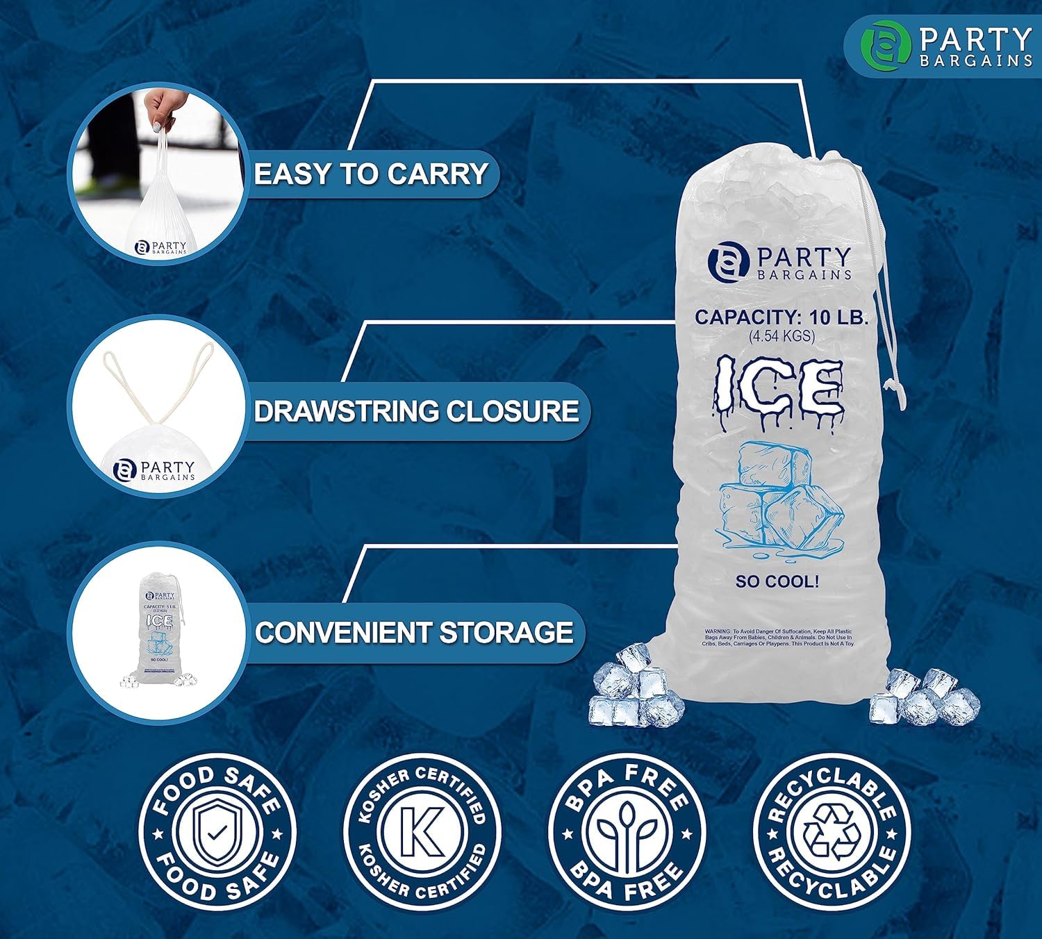 Durable Heavy-Duty Construction – Thick plastic material holds up to 10 lb of ice per bag with less tearing and leakage.