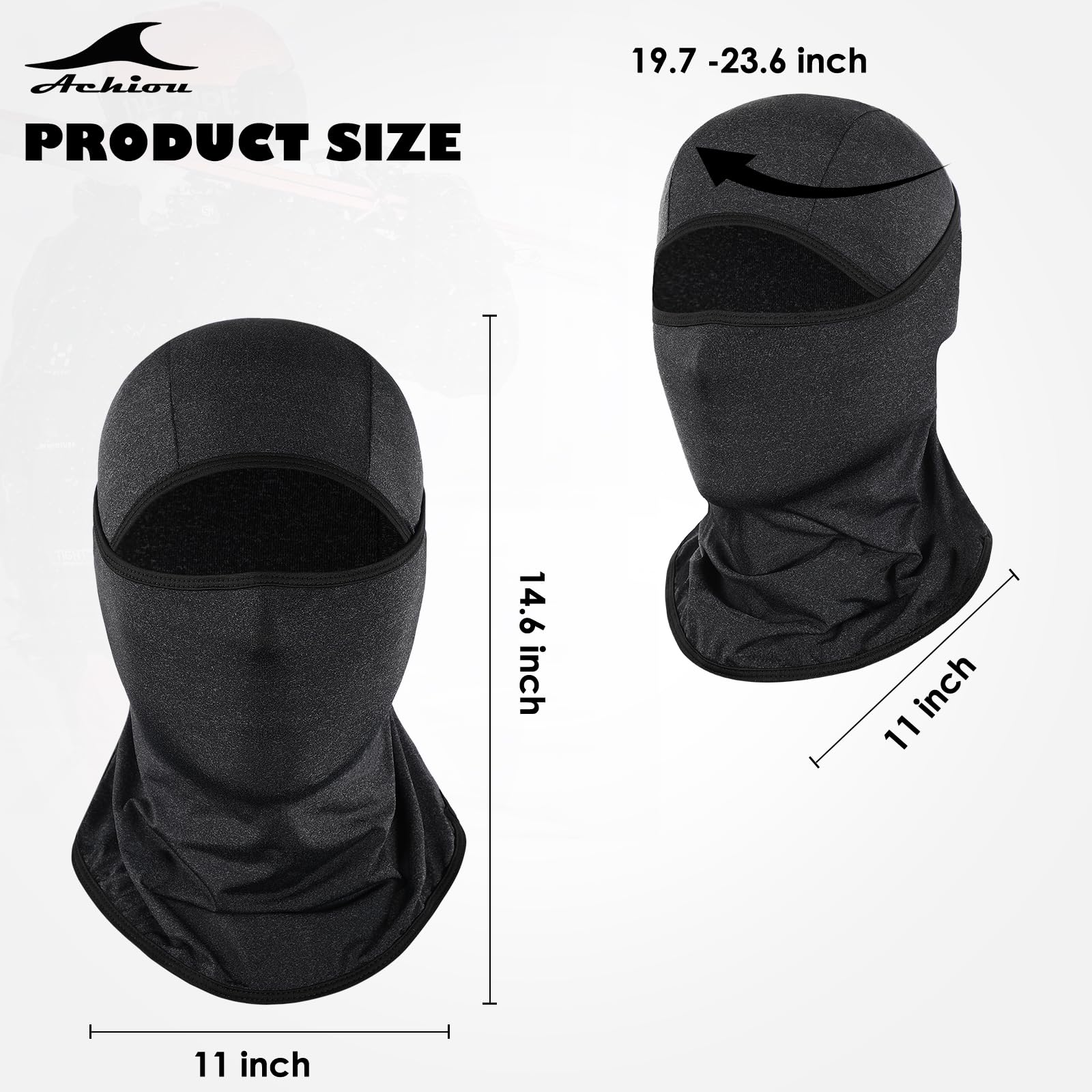 【Versatility】Can be worn as opened or closed balaclavas, face masks, neck gaiters, scarf or bandanas, helmet liners & ninja hoodie, or headbands even wristbands. People use Achiou full face mask for skiing, riding, fishing, snowboarding, motorcycling, hiking, climbing, running or cosplay. Just don't wear it in an airport or bank