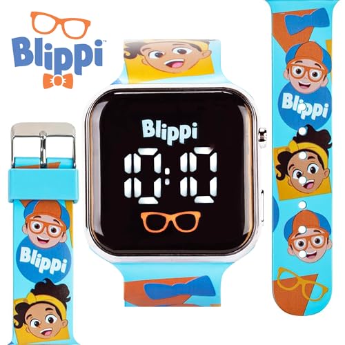 Description Explore the world of time with the Blippi Kids Smart LED Watch! Designed for curious little learners, this watch features an animated display with LED lights that bring excitement to education. The comfortable blue strap fits snugly on tiny wrists, ensuring the watch stays in place whether your child is in the classroom or on the playground. Incorporating the charm of Blippi, this watch not only helps with learning how to tell time but also serves as a reminder of the joy that comes from discovery and exploration. Its durable build is ready to withstand the rough and tumble that comes with being a kid, while the smartwatch design makes your little one feel like a grown-up. Presented in a fun Blippi-themed tin, this watch is the perfect surprise for any occasion. It’s a gift that combines the thrill of a new gadget with the love of learning, mirroring the excitement and energy of Blippi's own adventures. Embrace your child's love for learning and exploration with a watch that's as smart and fun as they are. With the Blippi Kids Smart LED Watch, telling time is just the beginning of the fun!