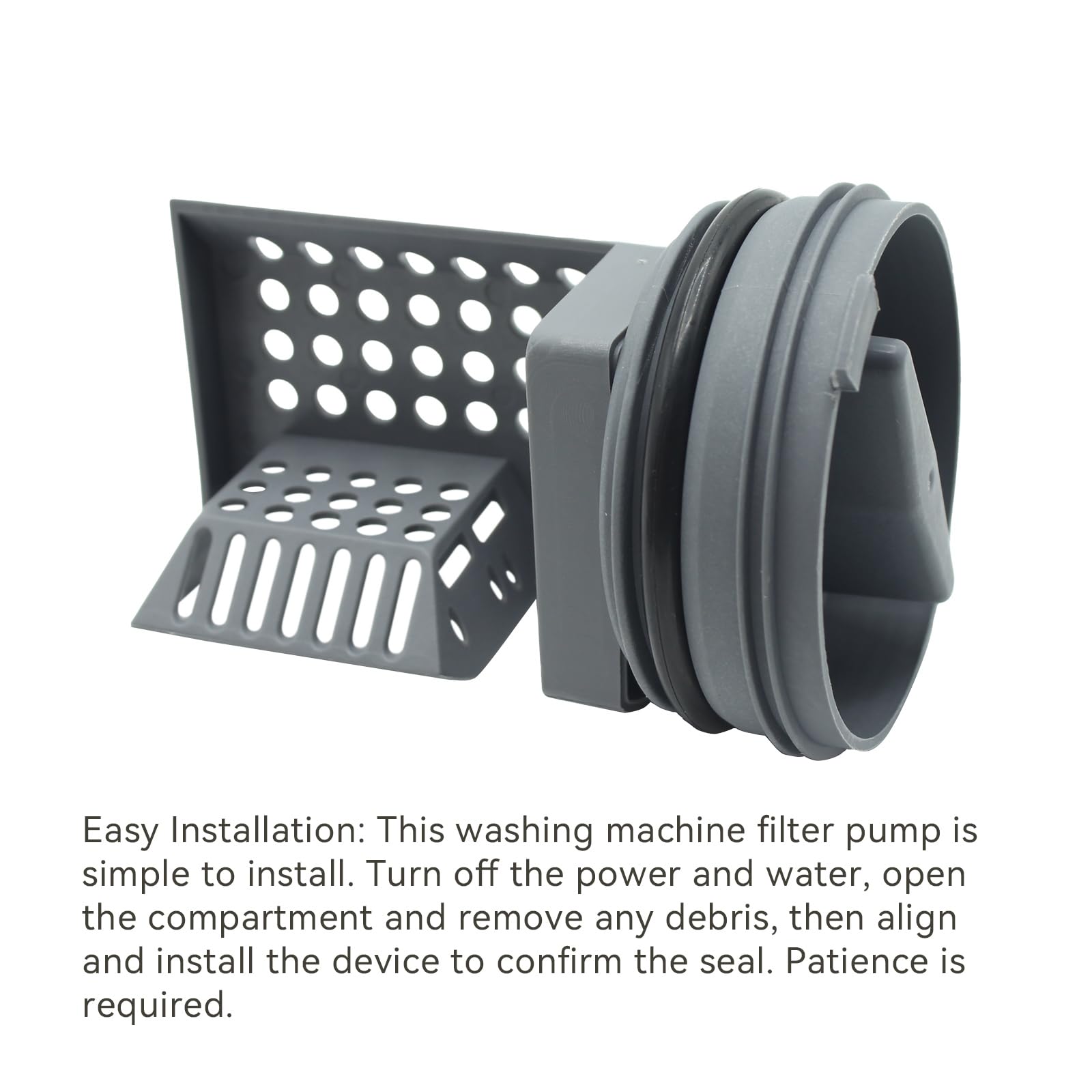 Easy Installation: This washing machine filter pump is simple to install. Turn off the power and water, open the compartment and remove any debris, then align and install the device to confirm the seal. Patience is required.