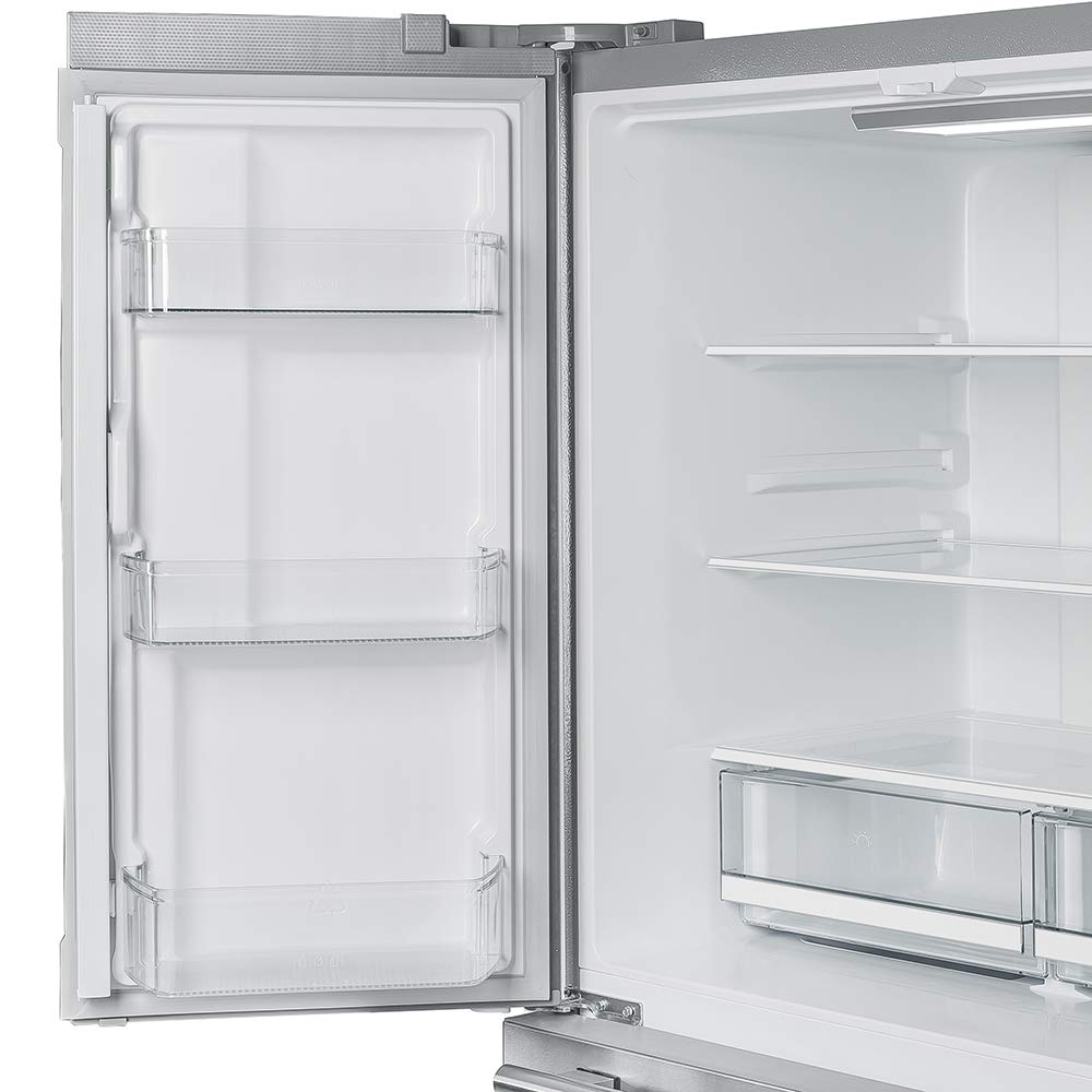 𝐅𝐑𝐄𝐒𝐇 𝐅𝐎𝐎𝐃 𝐙𝐎𝐍𝐄: The 36” Forno french door refrigerator offers a frost-free, free-standing design with a multi-air flow cooling system. With ample space to store your fresh food with 3 adjustable glass shelves, Two-gallon bins, and 2 Durable Drawers. The Fridge capacity is 12.12 cubic feet. Easy access drawers when doors are open at 90°
