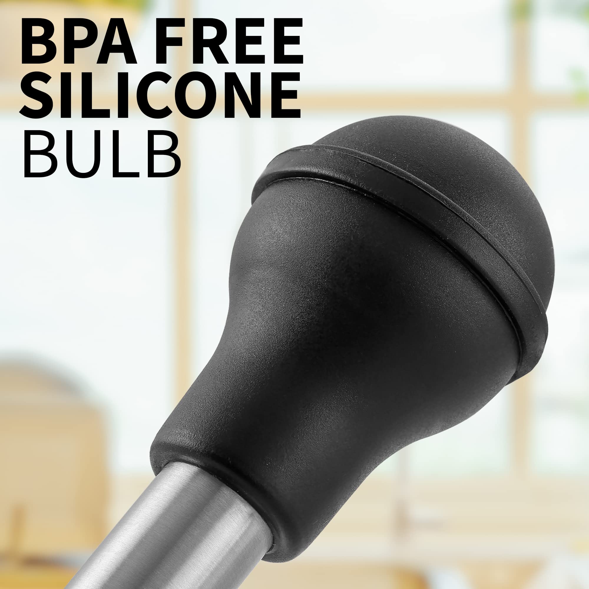 MAXIMUM SUCTION POWER: Our easy-to-hold silicone baster bulb is designed to provide perfect grip; with one single press you can fill up the 5.5 Oz dripless baster with liquid; ready to add more flavor to your meal.