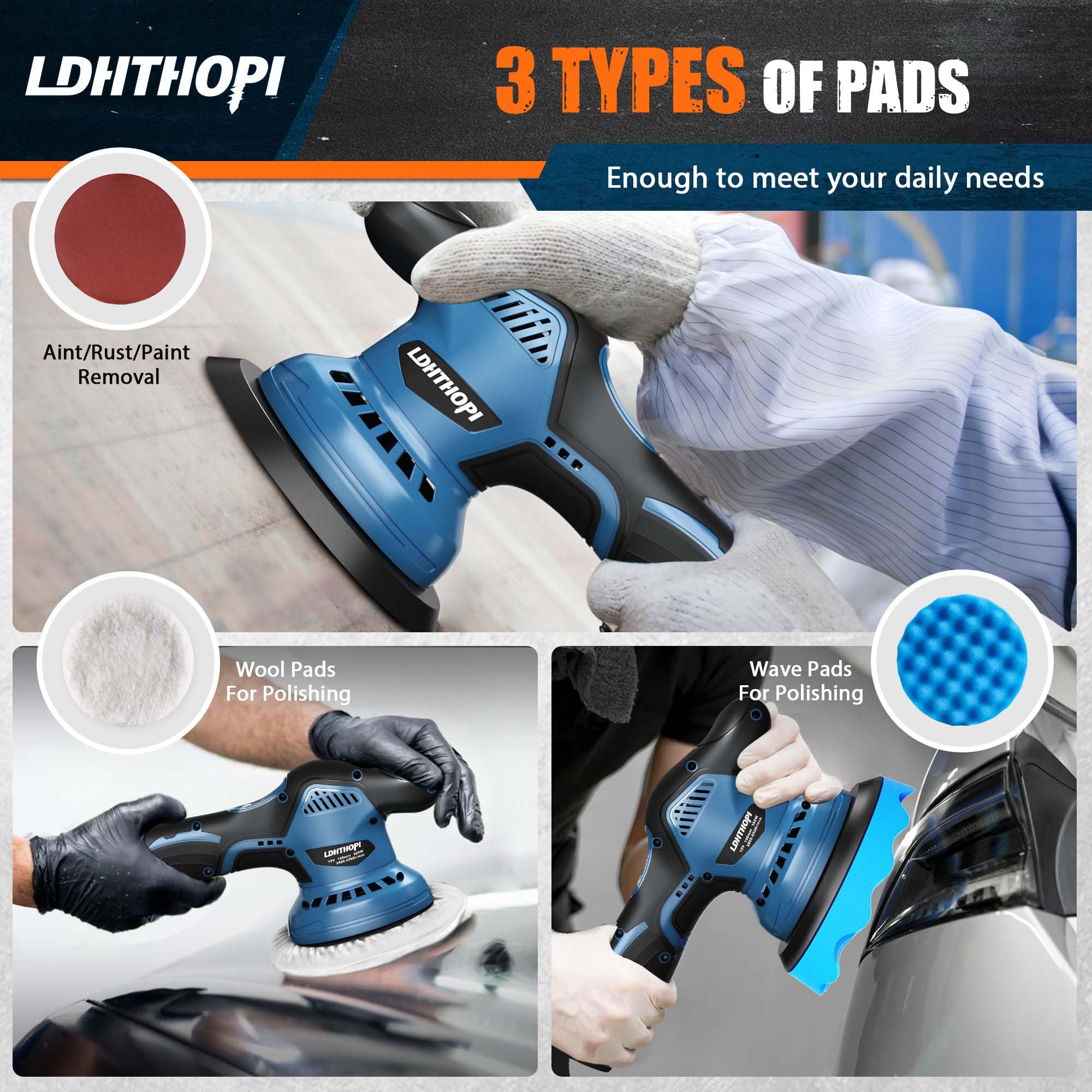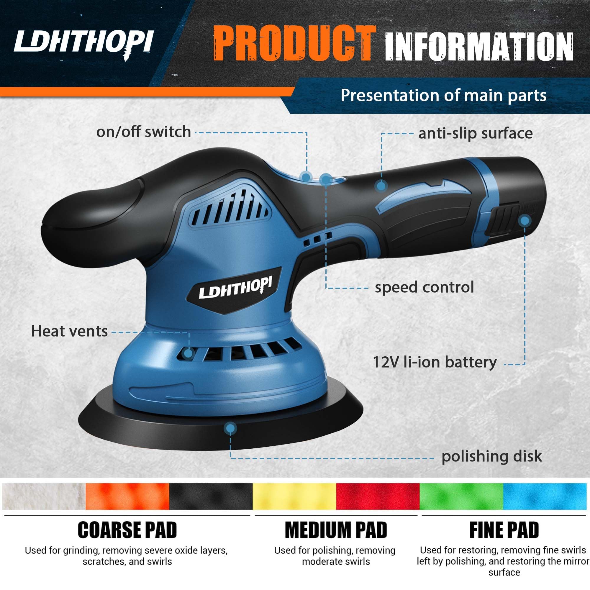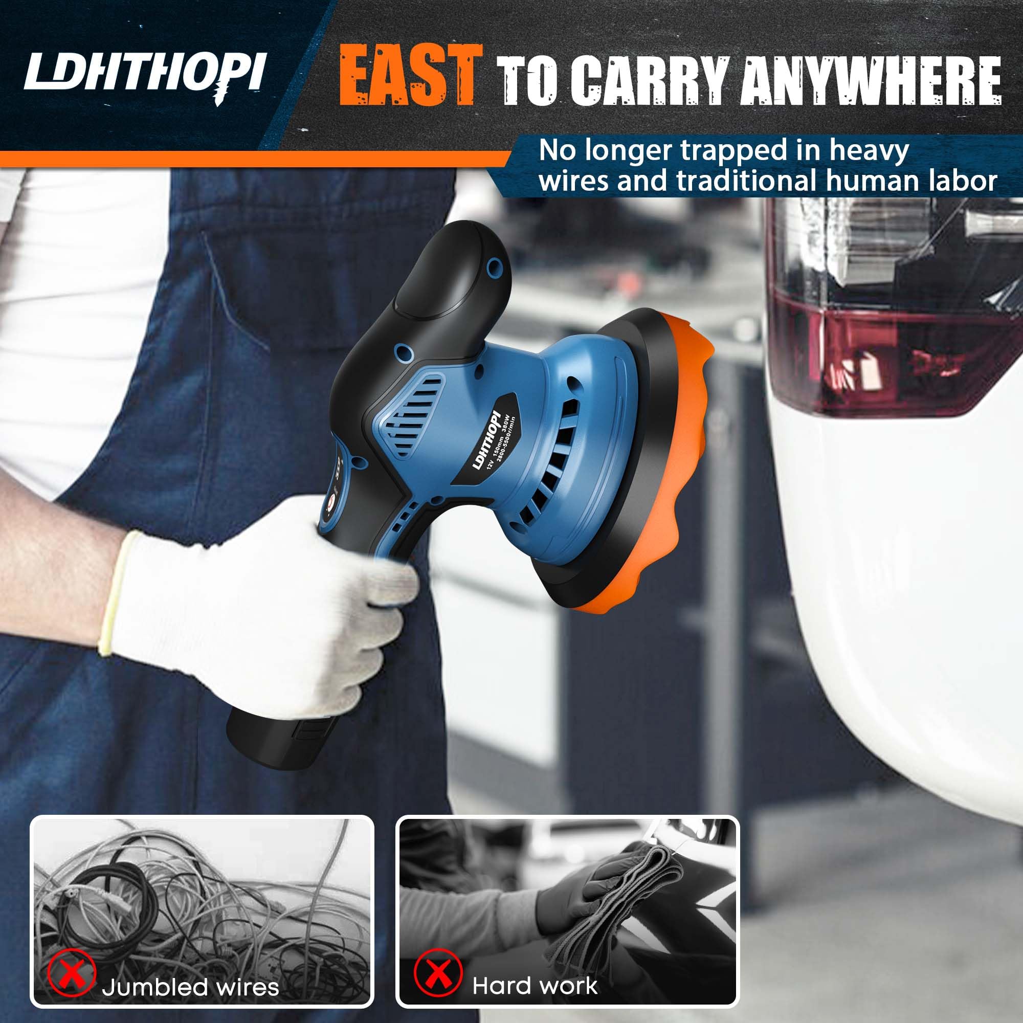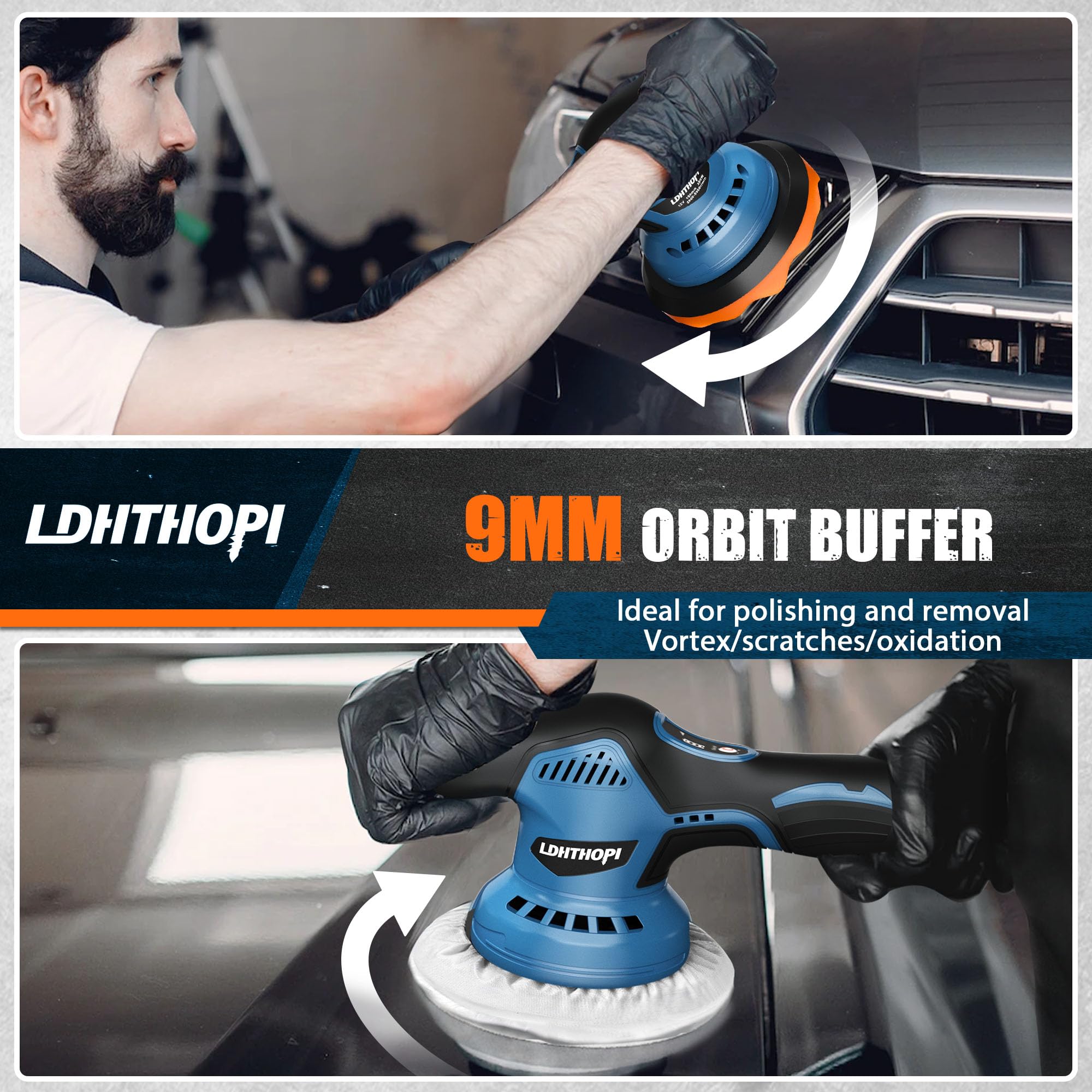 【Ergonomic Design】The lightweight and ergonomic design of LDHTHOPI battery powered dual action polisher waxer offers comfortable handling and reduces fatigue, enabling you to work for longer periods without discomfort.