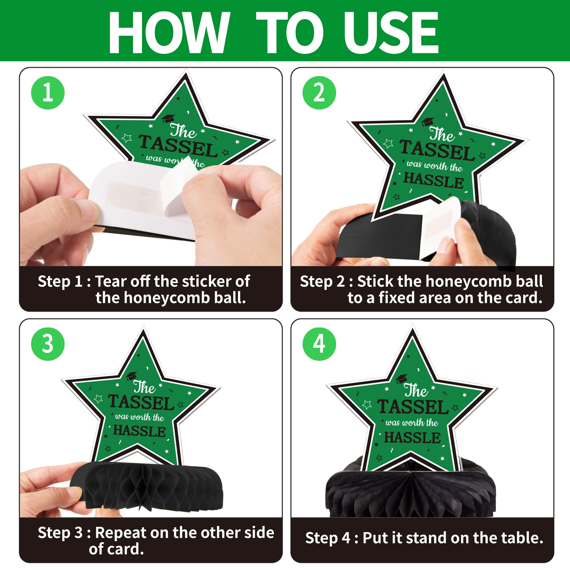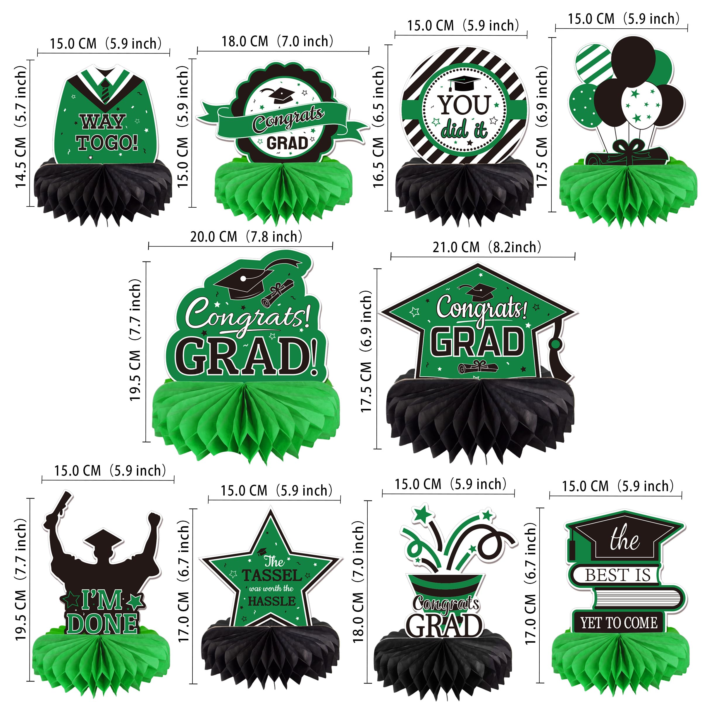 β Package included: 10 Pcs Graduation Honeycomb Centerpieces, it contains 10 patterned cardboards and 20 paper honeycombs,and matching lanyards.