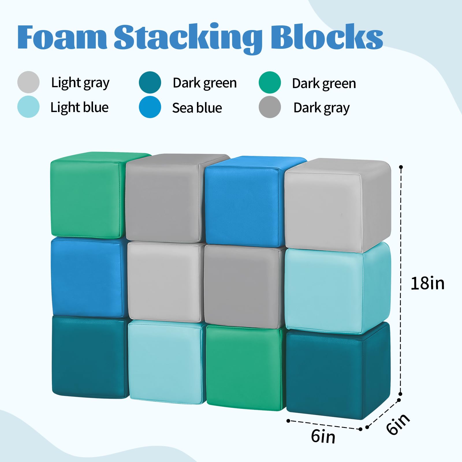 Modern-Tone : 12-Piece Foam Building Blocks for Toddlers Spark calm creativity! These wipeable, waterproof foam blocks feature sophisticated blues and greens – perfect for focused stacking and construction play. Designed to support early STEM engagement and fine motor development, these manipulatives are ideal for quiet, focused learning across Preschool, Pre-K, and Kindergarten classrooms.