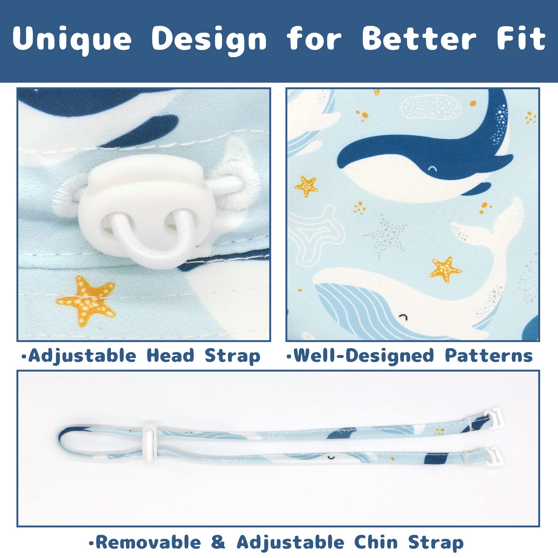FITS WELL & SAFE: Our baby hats’ chin straps and head straps offer a customized fit and adjust as your baby grows. Chin-strap feature protects the hat from being blown away on windy days.