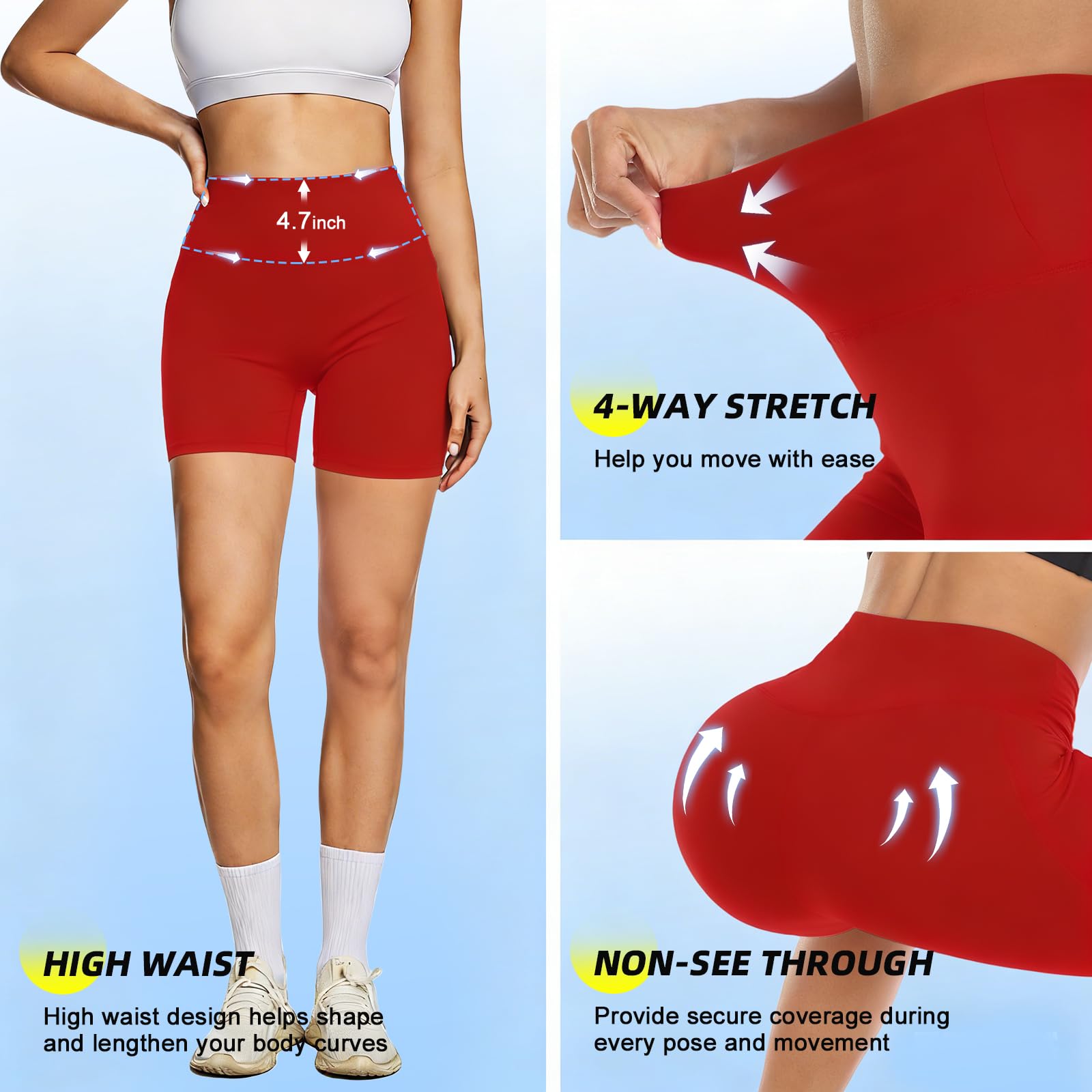 4 WAYS STRETCH & NON-SEE-THROUGH - This workout spandex shorts for women is made of 4 way stretch and non see through fabric, which provides maximum comfort and protection during your every pose and movement, allows for maximum comfort and wear ability