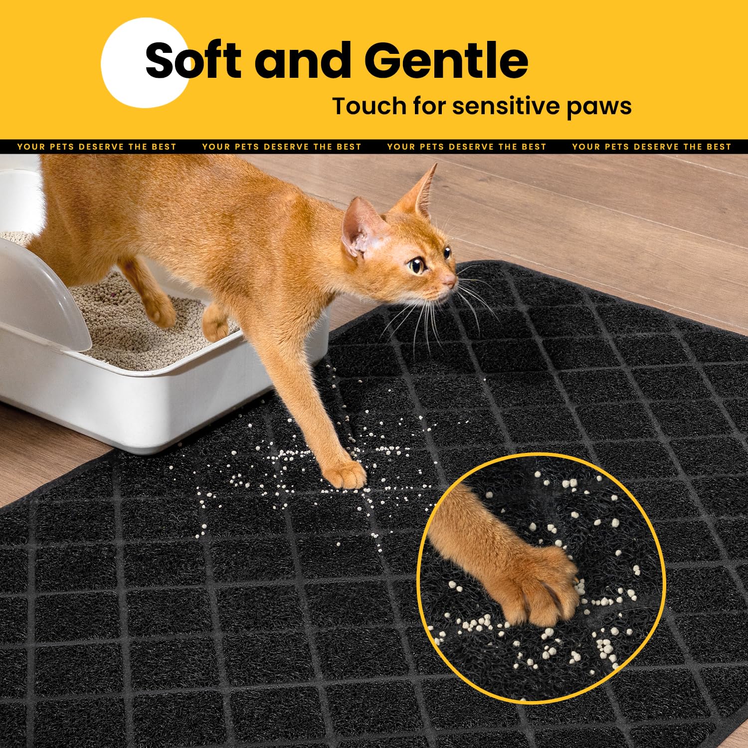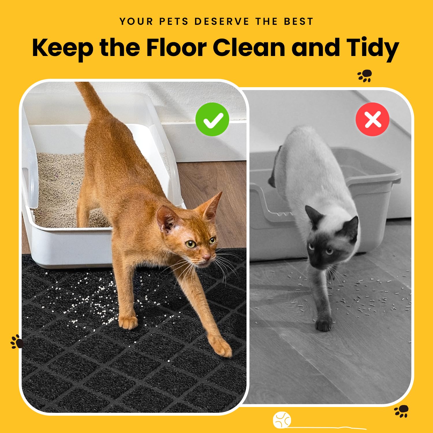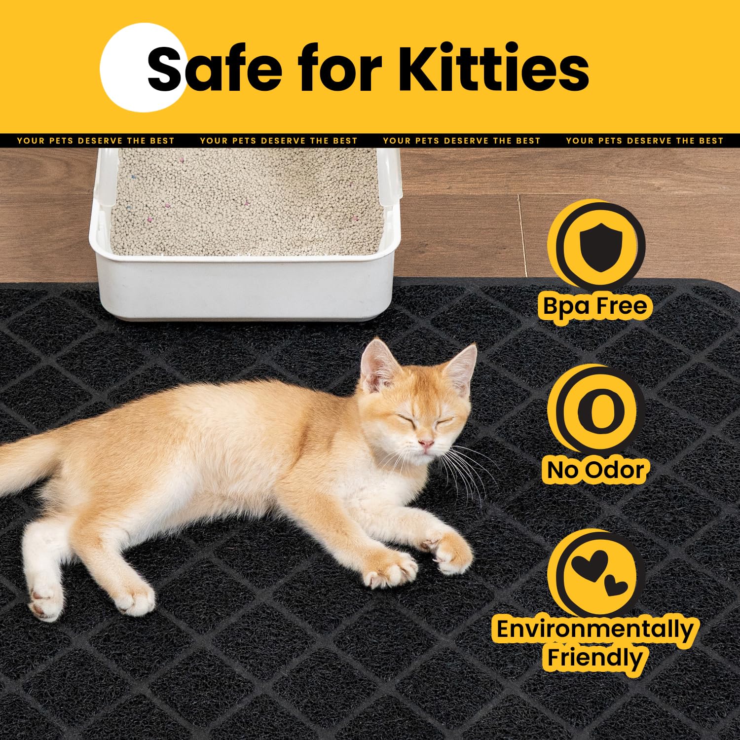 Premium Quality: Made from soft PVC material, our kitty litter mat creates a comfortable and cushioned feel for your cat’s sensitive paws, yet soft enough for your cat to nap on. Safe for your cat and environmentally friendly because our cat matts for litter is laboratory tested to be phthalate and BPA-free.
