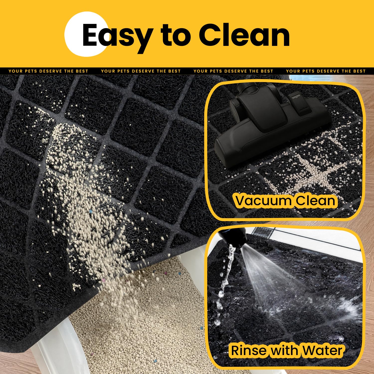 Easy to Clean: The cat litter mats are easy to clean by simply shaking off, vacuuming. And the materials are waterproof, you can rinse down with soapy water before leaving to fully dry (preferably not in direct sunlight).