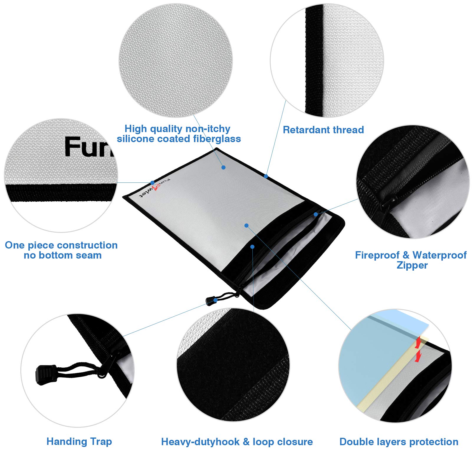 Protect Your Belongings: The FunOwlet bag is designed to protect valuable items from fire, rainwater, and malfunctioning lithium battery packs. These fireproof document bags ensure your important belongings stay safe even during unexpected fires.