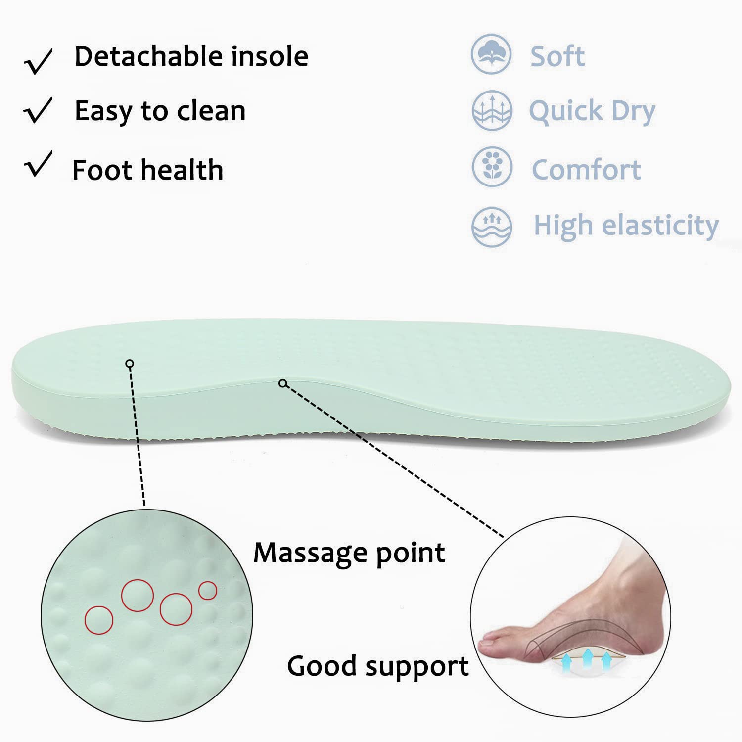 BETTER SUPPORT: Our unique insole provides arch support, absorb impact to reduce the stress on your feet, joints, back