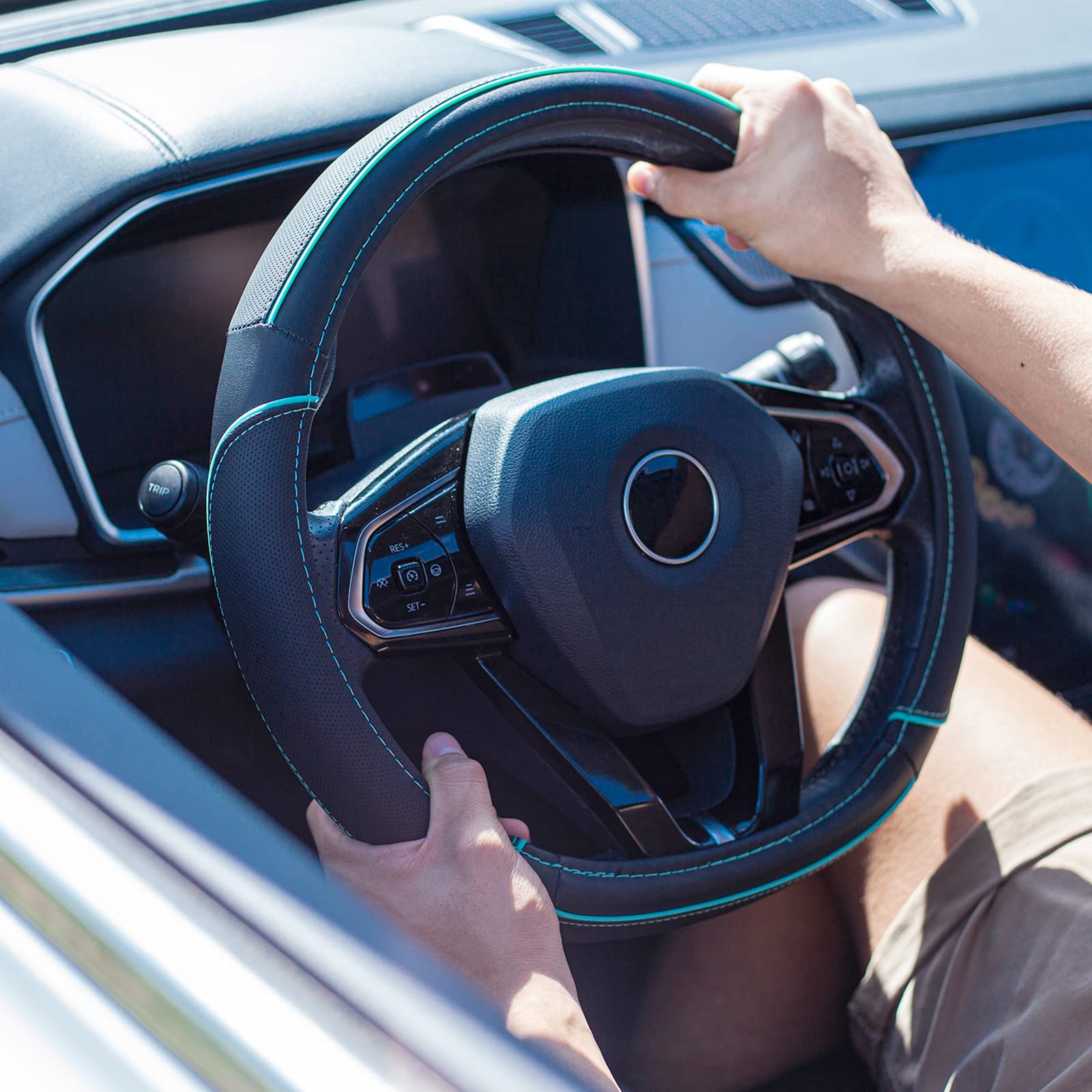 SPORTY DESIGN WITH PIPING COLOFUL LEATHER:Feel Very comfortable when driving.Protect your hands from burning hot steering wheels in summer and ice cold ones in winter.