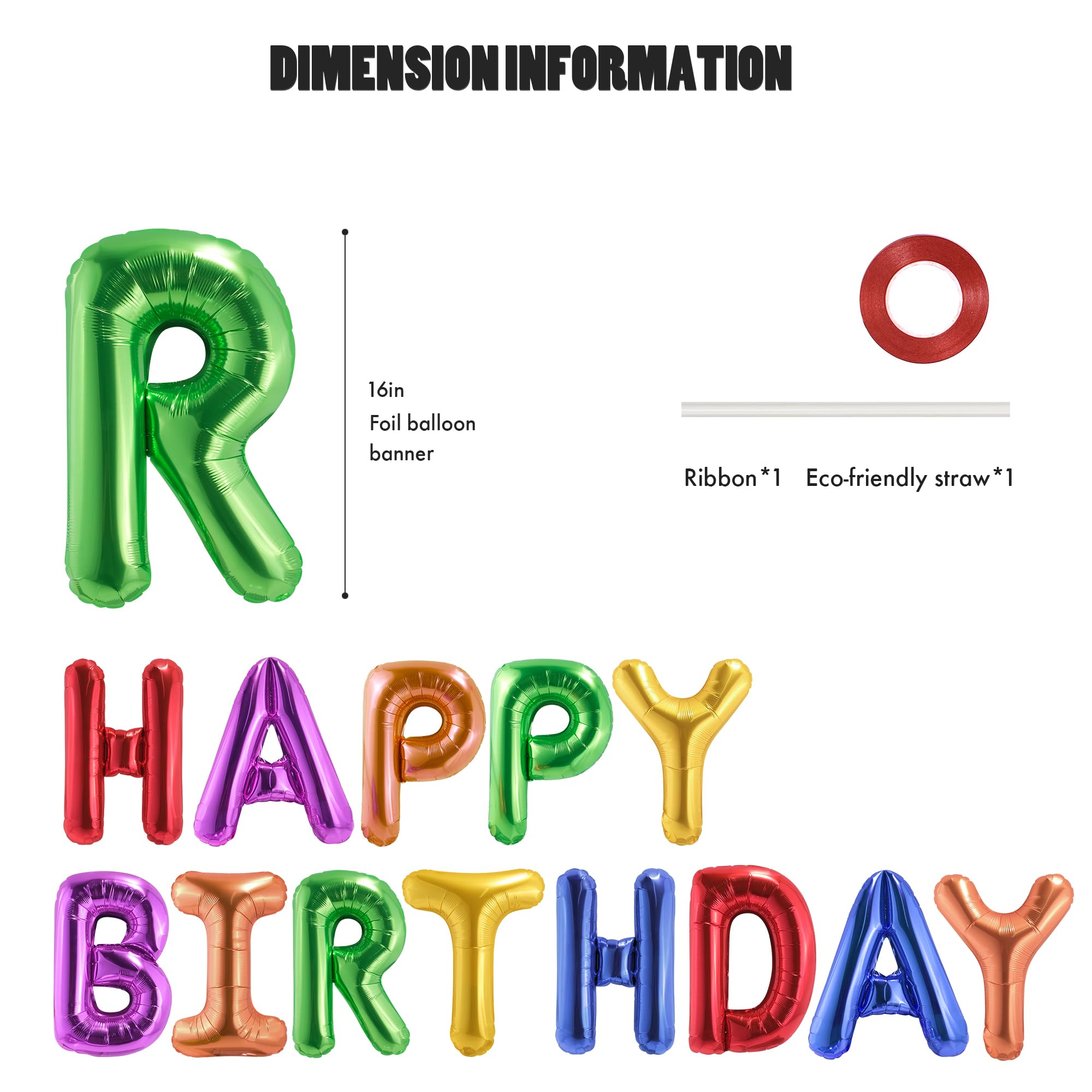 🎈VALUABLE PACK : 13 Pcs rainbow color "Happy Birthday" letter balloons with 2pcs straw and 1 pcs ribbon. Each letter balloon measurement about 16 Inch.