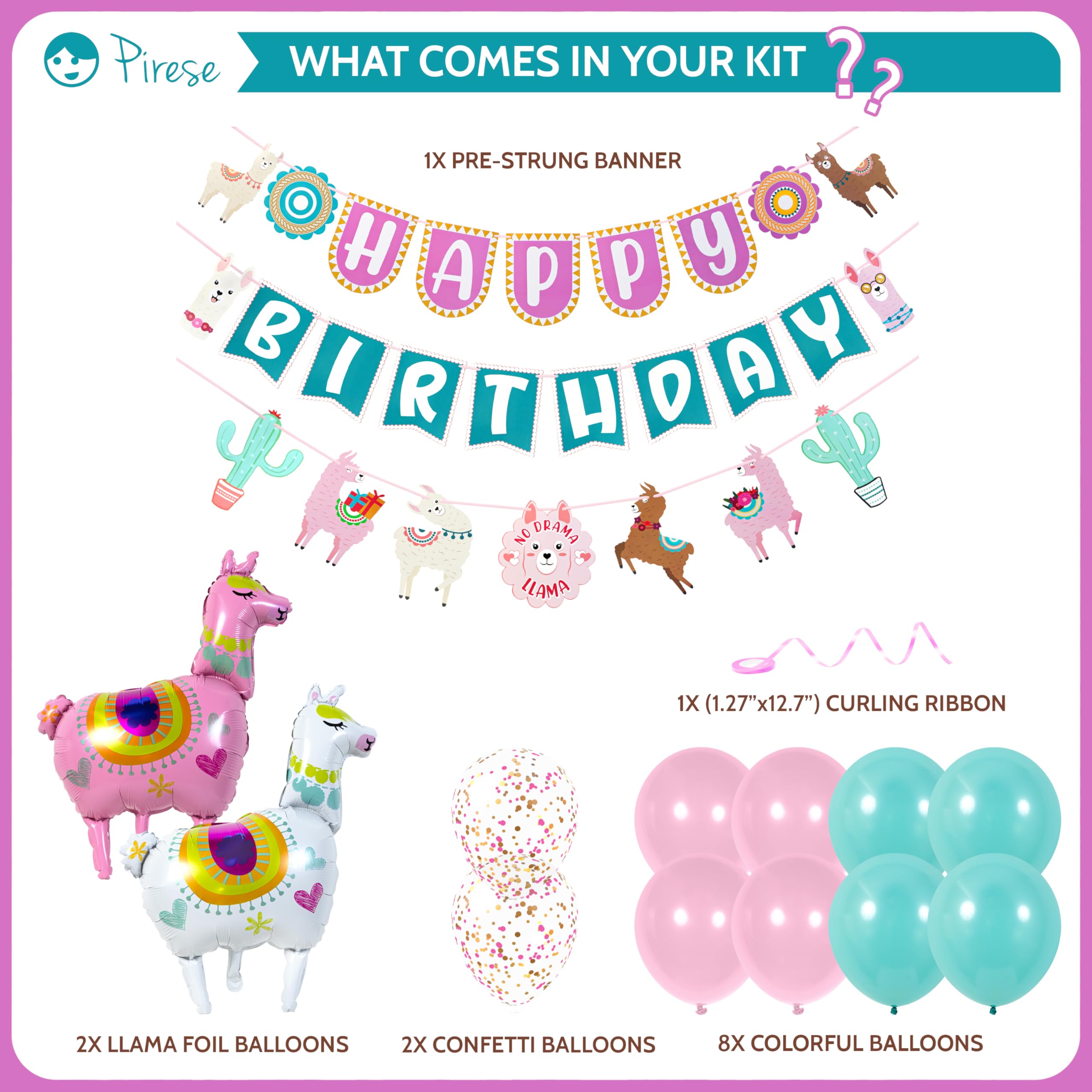 ALL-IN-ONE DECORATION KIT! – Your llama party dreams come true! Includes a 6.6ft llama happy birthday banner, 8 colorful 12” balloons, 2 llama foil balloons (35.4"x22"), and 2 confetti balloons (12”). The ultimate kit for unforgettable llama birthday decorations!