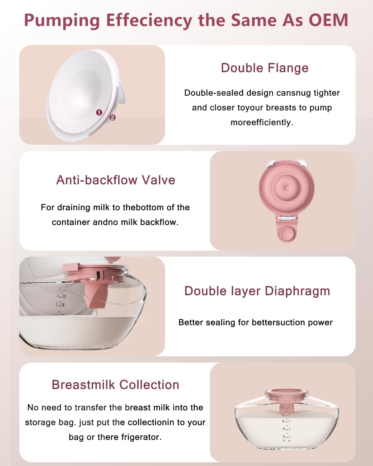 【Better Sealing&No-Leak】: Double-layer diaphragm and double-sealed flange parts help maintain the suction power of your breast pump,and two-Layer designing provide more strong suction power and reliable sealing, reducing leaks and ensuring smooth operation.These also help retain a strong suction to make pumping easier, faster, and more comfortable.
