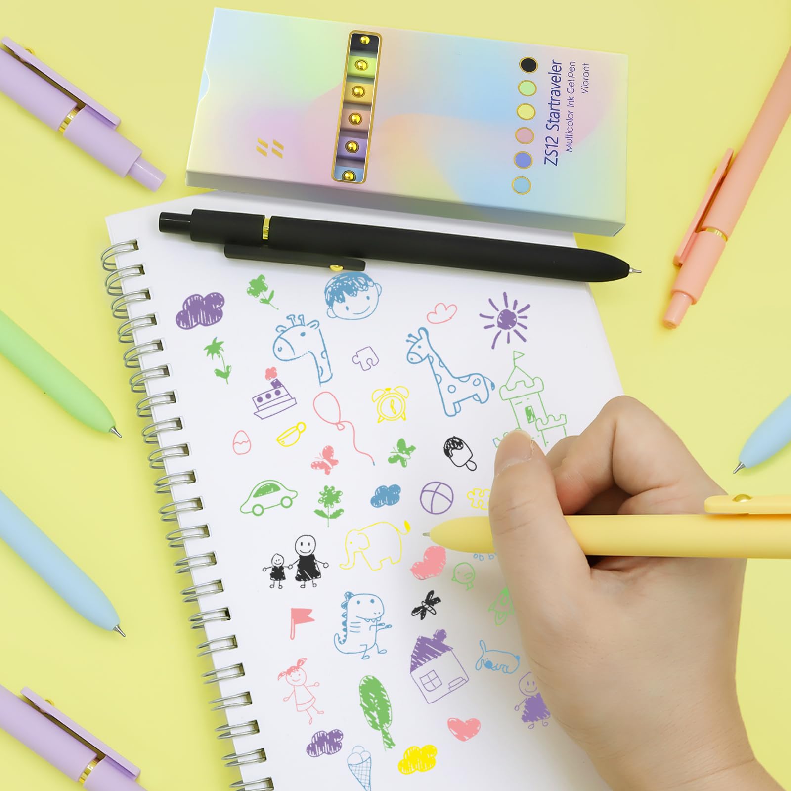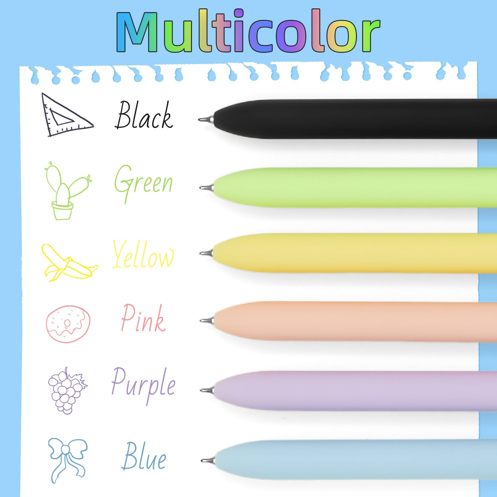 Vibrant Colored Gel Pens: You can get 6 new colored pens filled with 6 different colors of ink which turns note-taking, planning, and journaling session into a fun and colorful event. They will add a touch of personality to your work or school