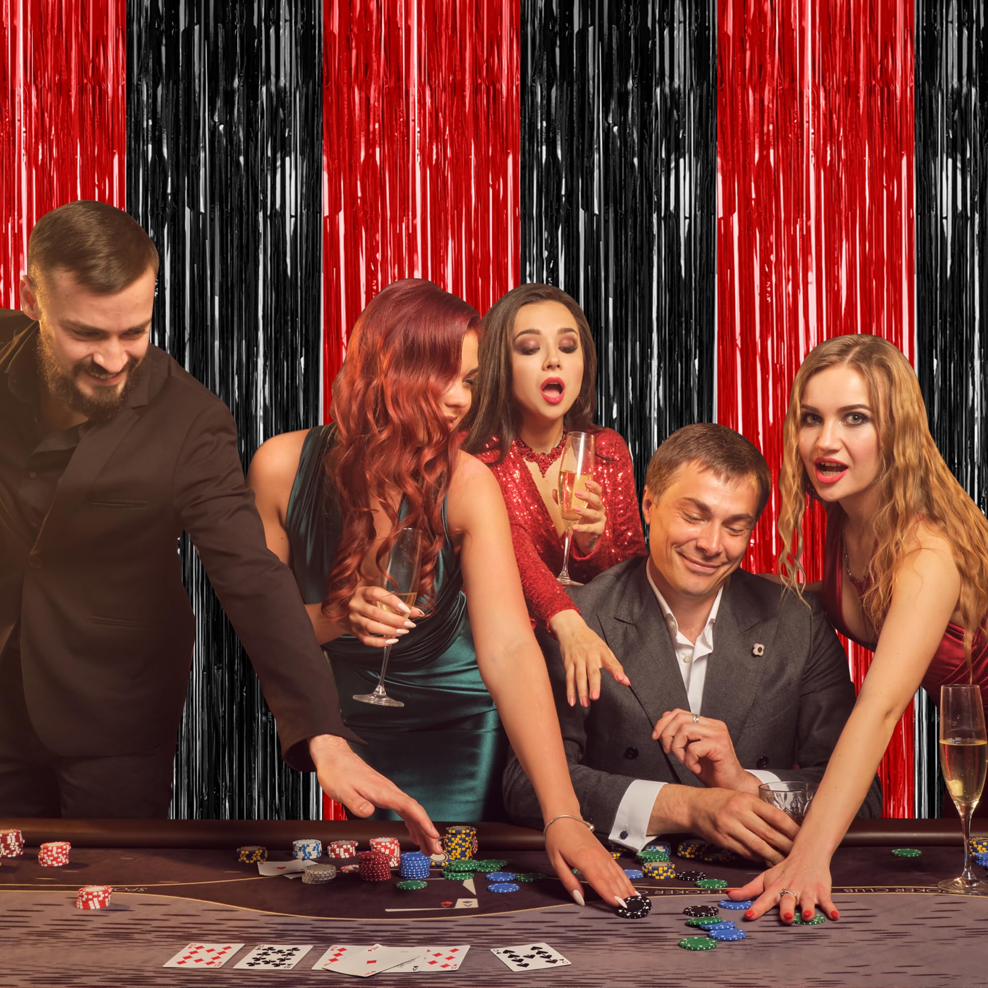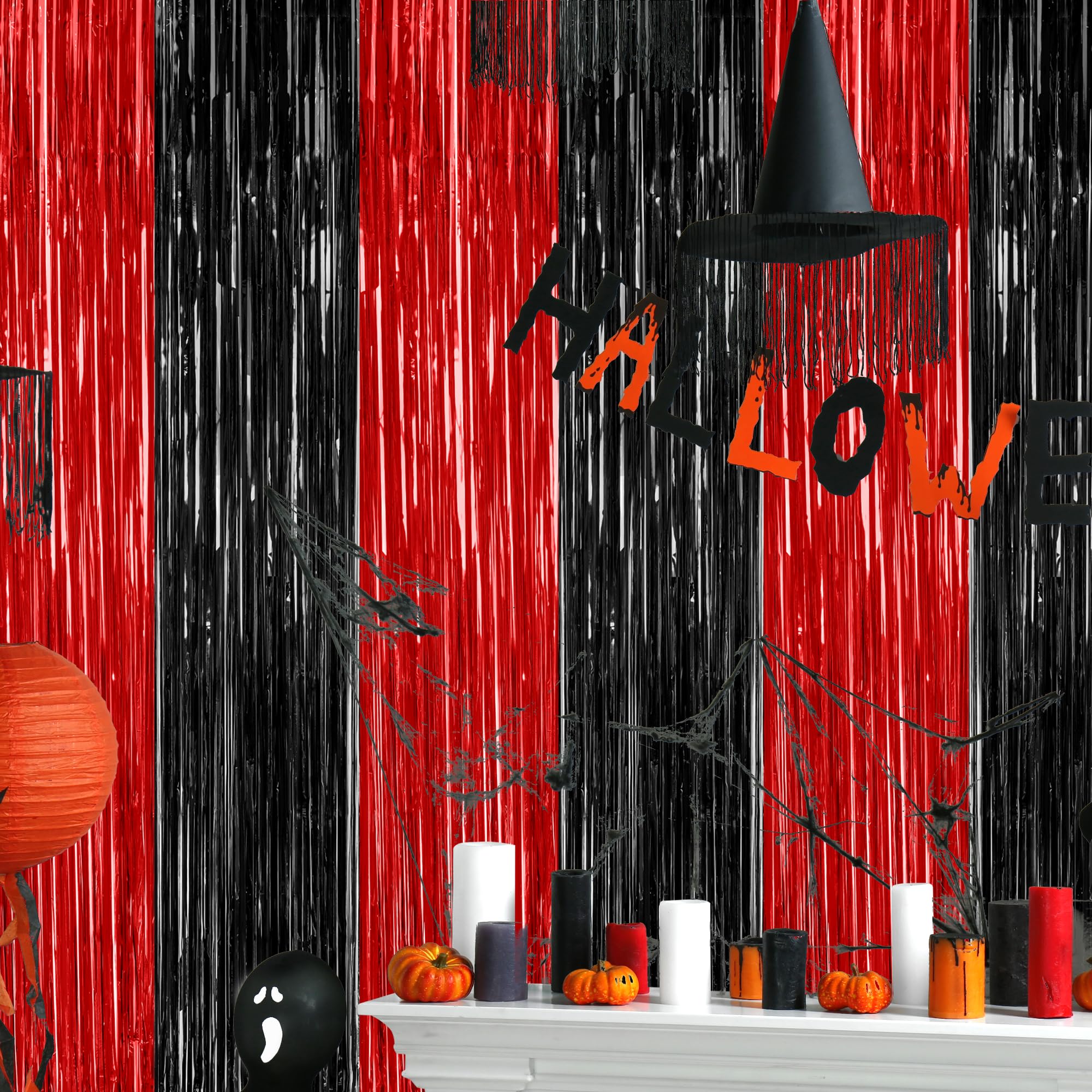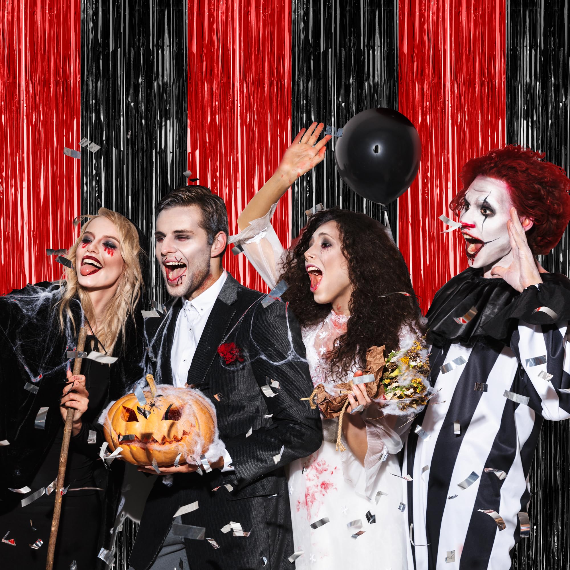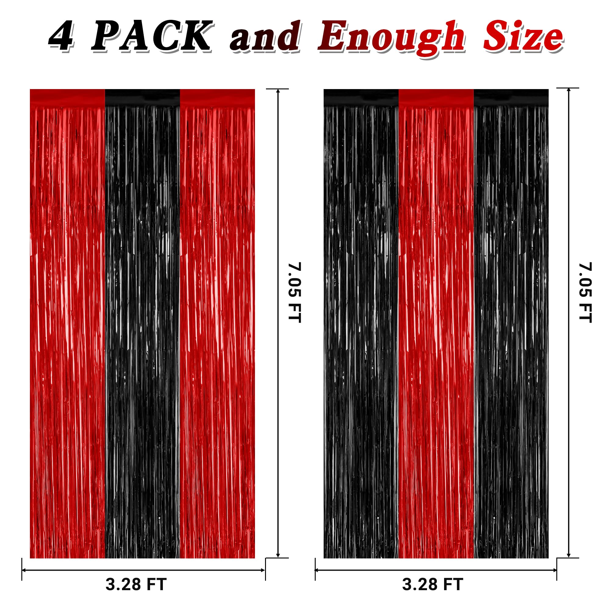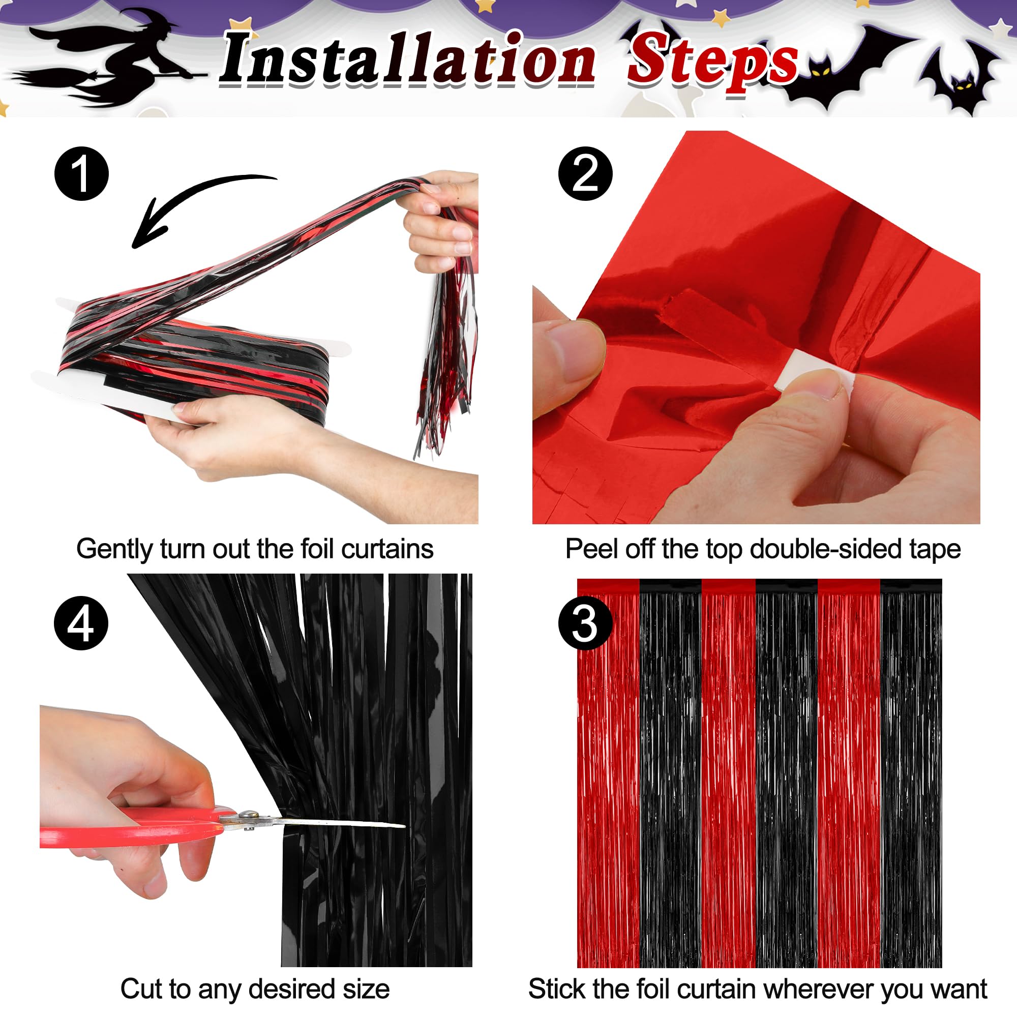 Package Includes: You will receive 4 pcs red and black foil streamers, each measuring 3.28 ft x 7.05 ft, oversized to be cut to your desired length, perfect for Halloween photo props.