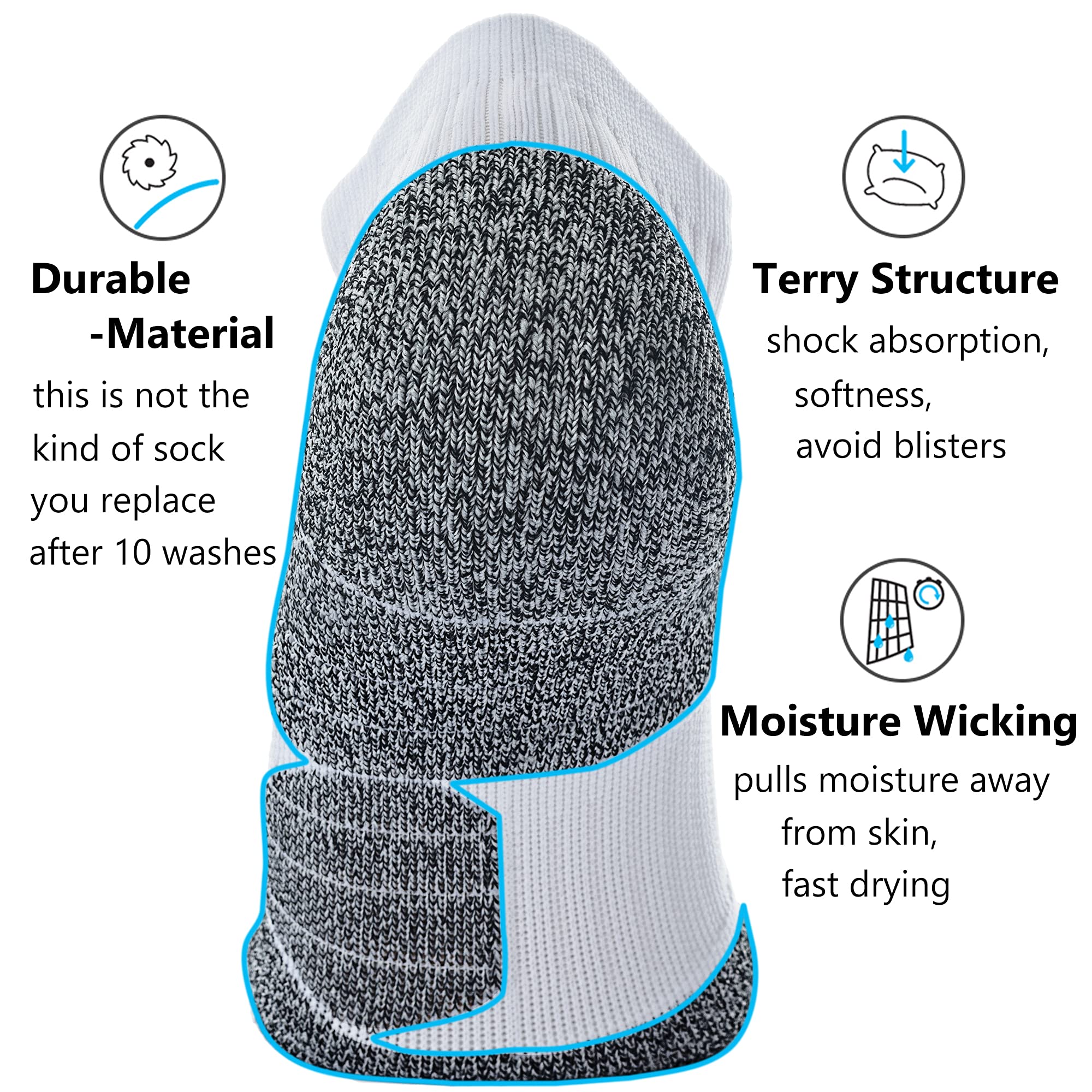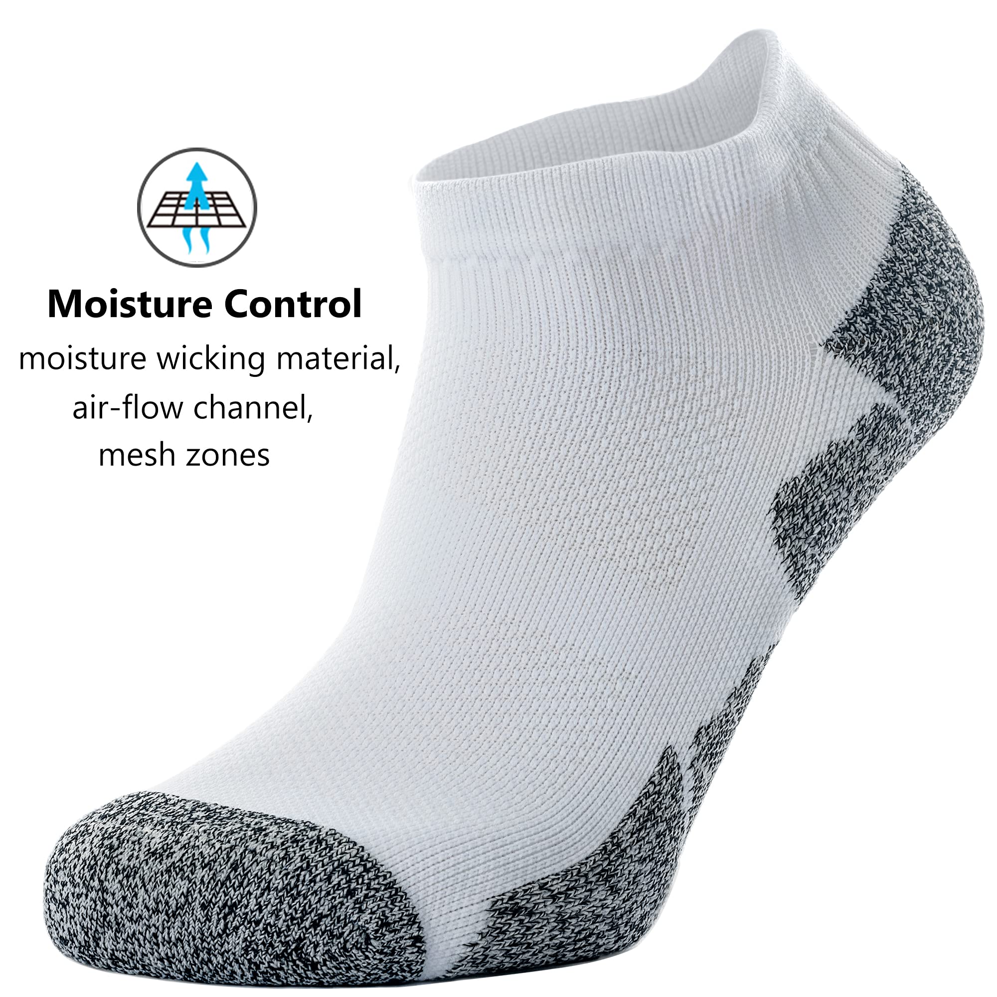 UNIQUE SOLE: Moisture wicking and durable fibers, pull moisture away from skin; With cushion, soft and comfy, shock absorption; Design LEFT AND RIGHT SOCKS according to the plantar structure