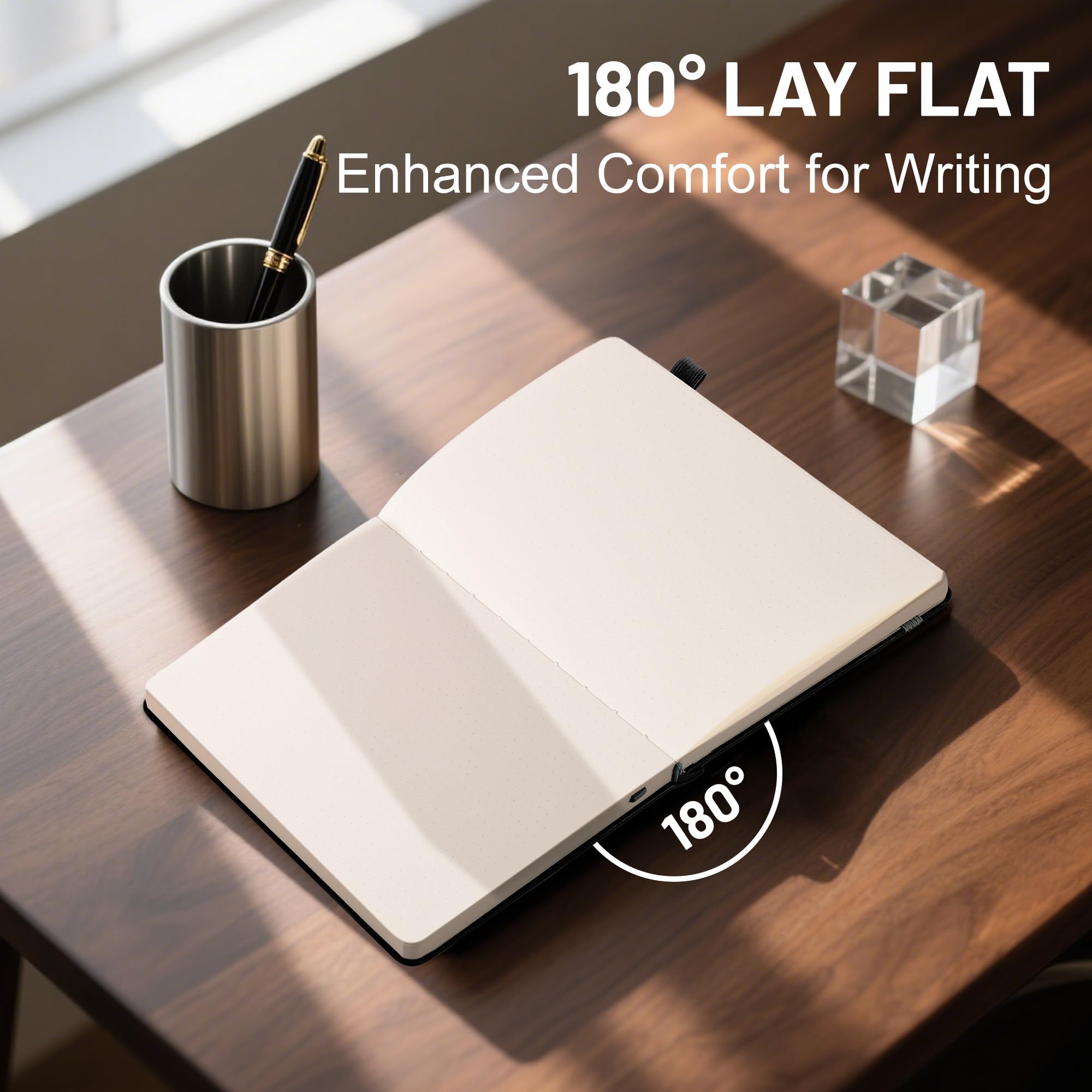 180° LAY FLAT DESIGN- The dotted journal is securely bound and sits perfectly 180 degrees, allowing seamless use of both pages. It is easy to write for both right and left-handed users. Perfect dot grid notebook for bullet quick journaling, note taking or planning