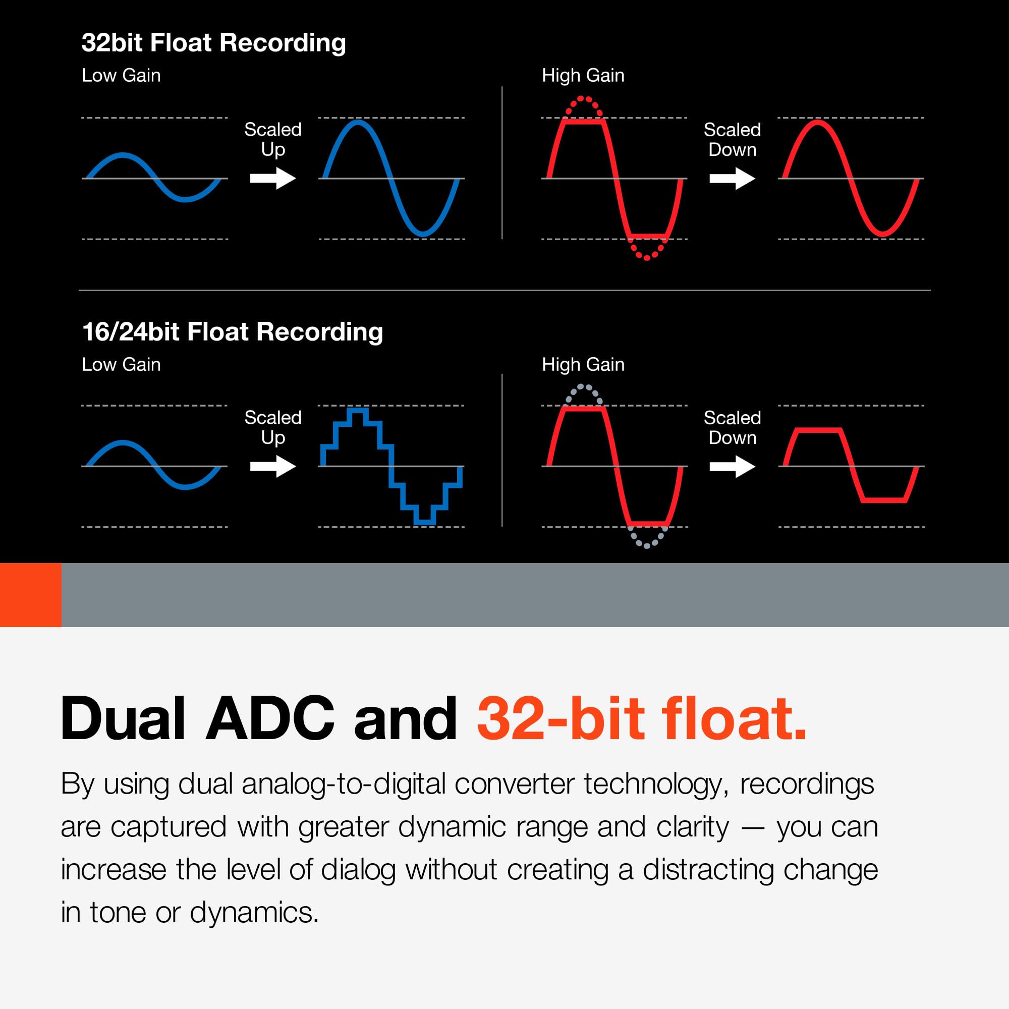 Recording applications such as basic multi-track recording, podcasting, music, voice (interviews, vlog), field recording, ASMR and more. Supports up to 192kHz/ 32-bit float point recording.