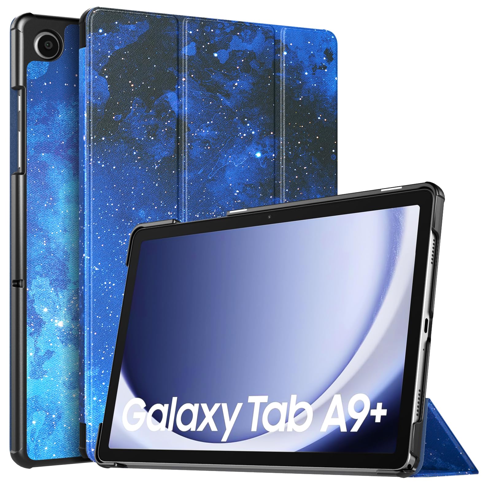 Adjustable Stand Angles: The top of this Galaxy Tab A9 Plus Case folds back to make a stand, which provides a sturdy stand position for both viewing and typing. Free your hands when watching, reading, or writing, a good way to alleviate neck strain