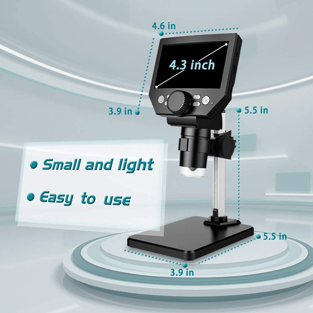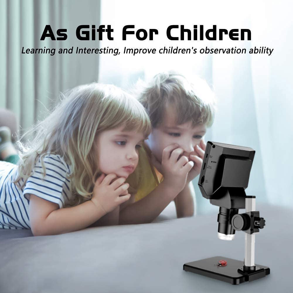 【4.3-Inch High-Definition LCD Screen and 32GB Card】4.3-inch screen microscope can capture a clear detailed view of the object in a certain area of the picture and record video, and record a clear micro-world experience, The images and videos obtained during the observation process are saved in a 32GB SD micro card (Included 32microSD card).