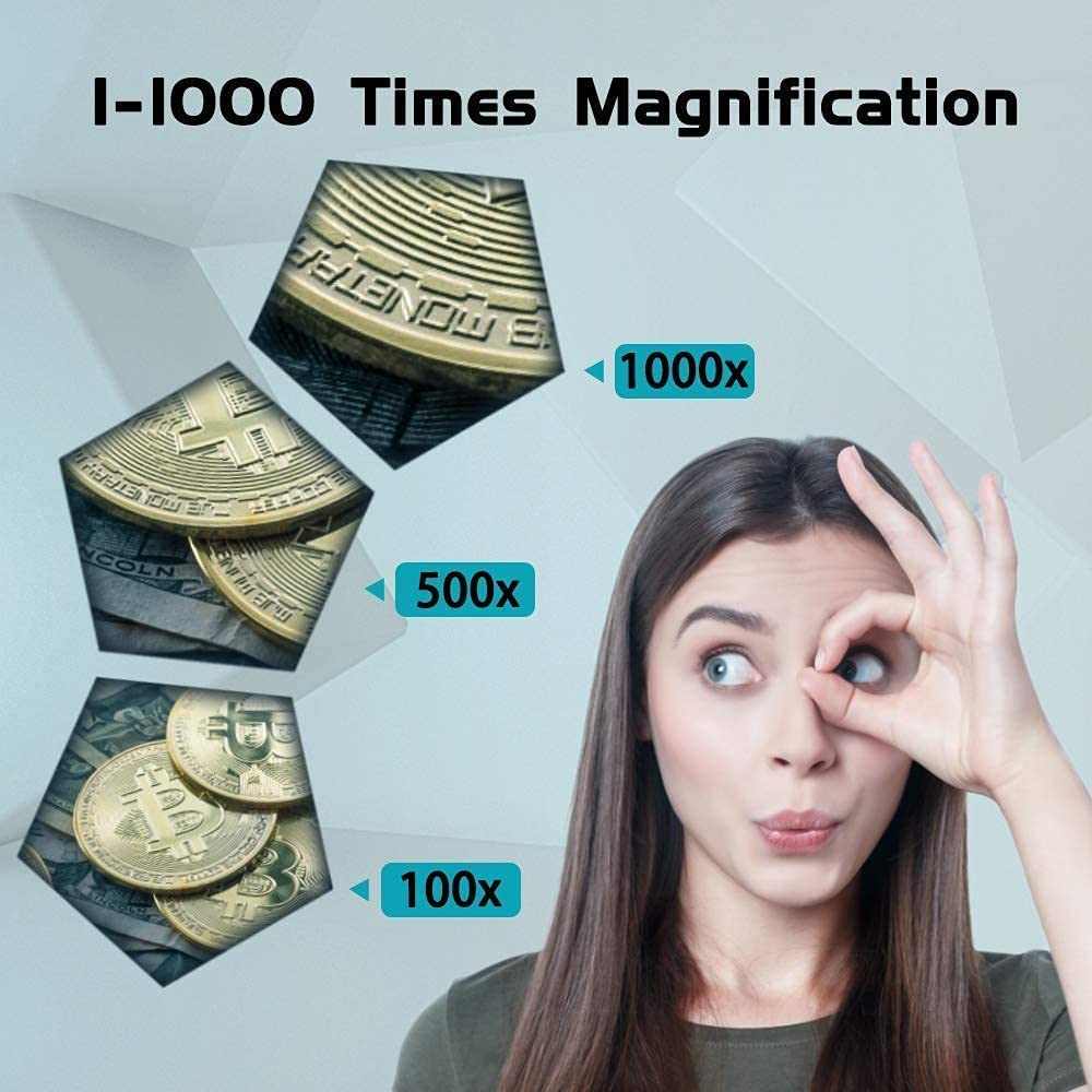 【50X-1000X Digital Magnification】LCD digital microscope has 2.0MP camera technology and precise focus. The microscope magnification is 50X to 1000X, allowing you to clearly view the smallest details of the specimen, such as plants, coins, diamonds, Welding, etc., can help you easily see the clear details of tiny objects.