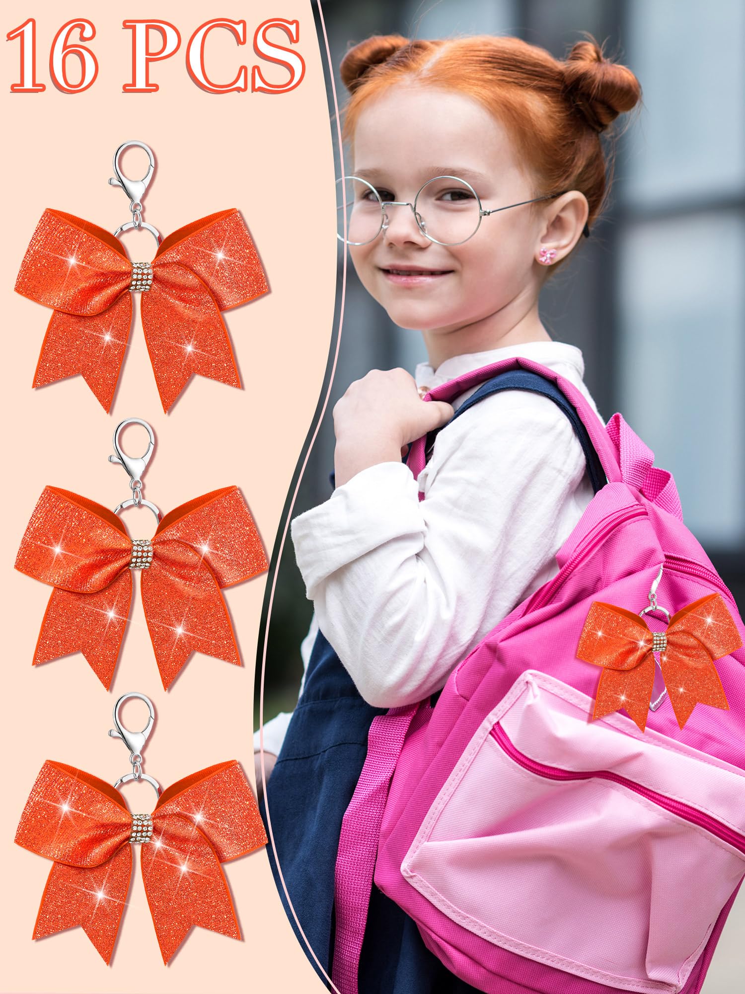 What You Will Get: each package includes 16 pieces of cheer bow keychains, nice for quantity users and suited for various occasions; These cheerleader bow keychains are embellished with a glittery finish, making them decorative charms, and the adequate quantity will meet your various needs
