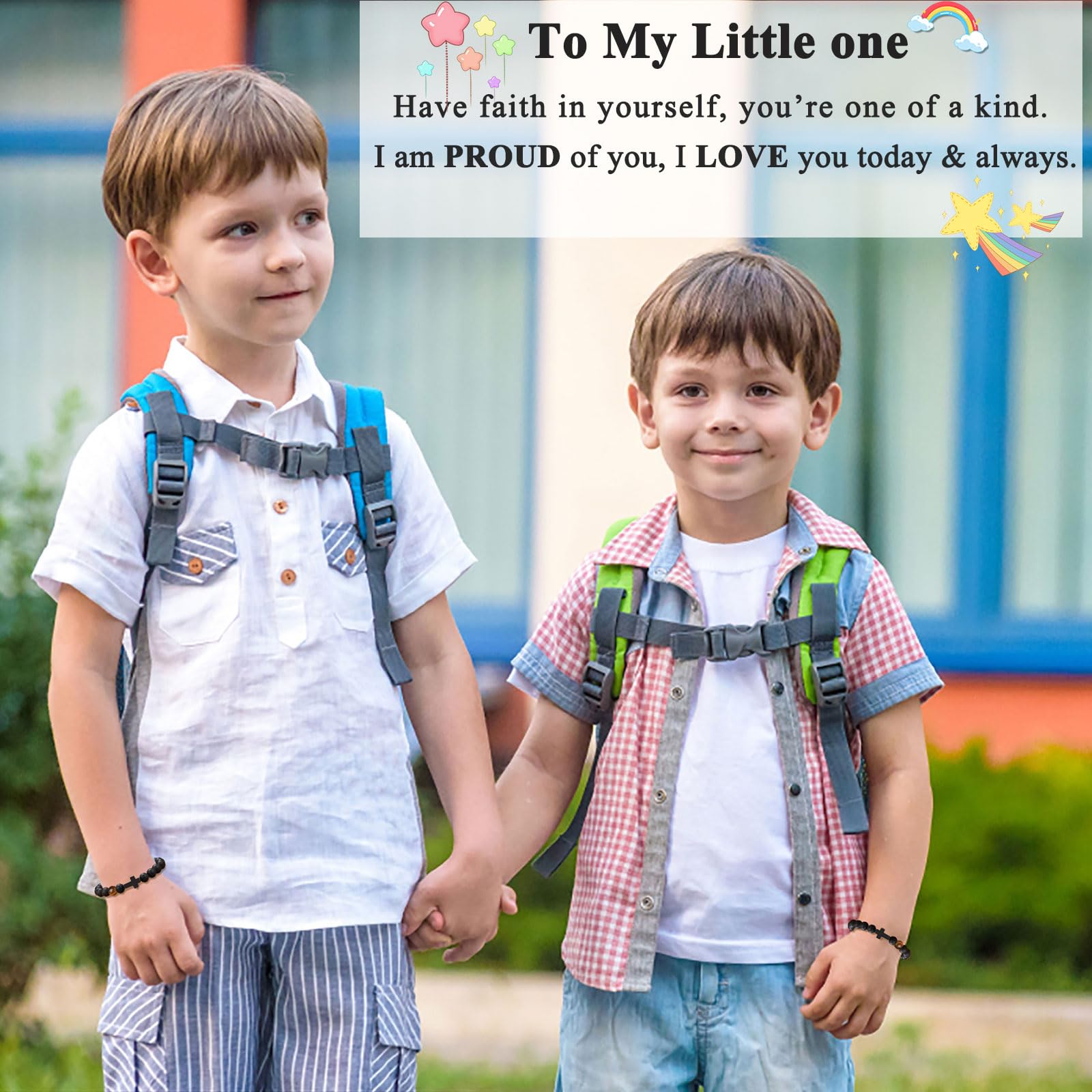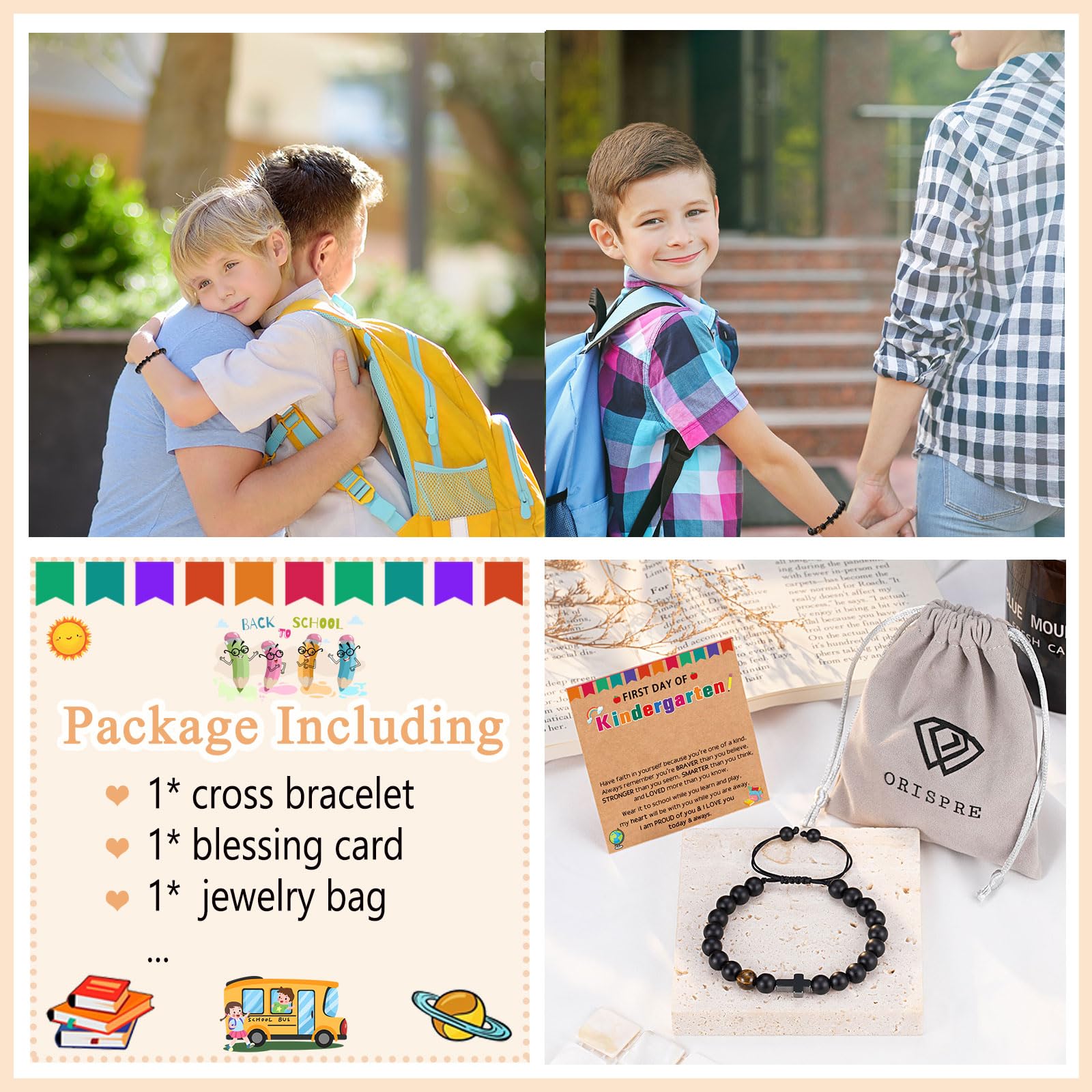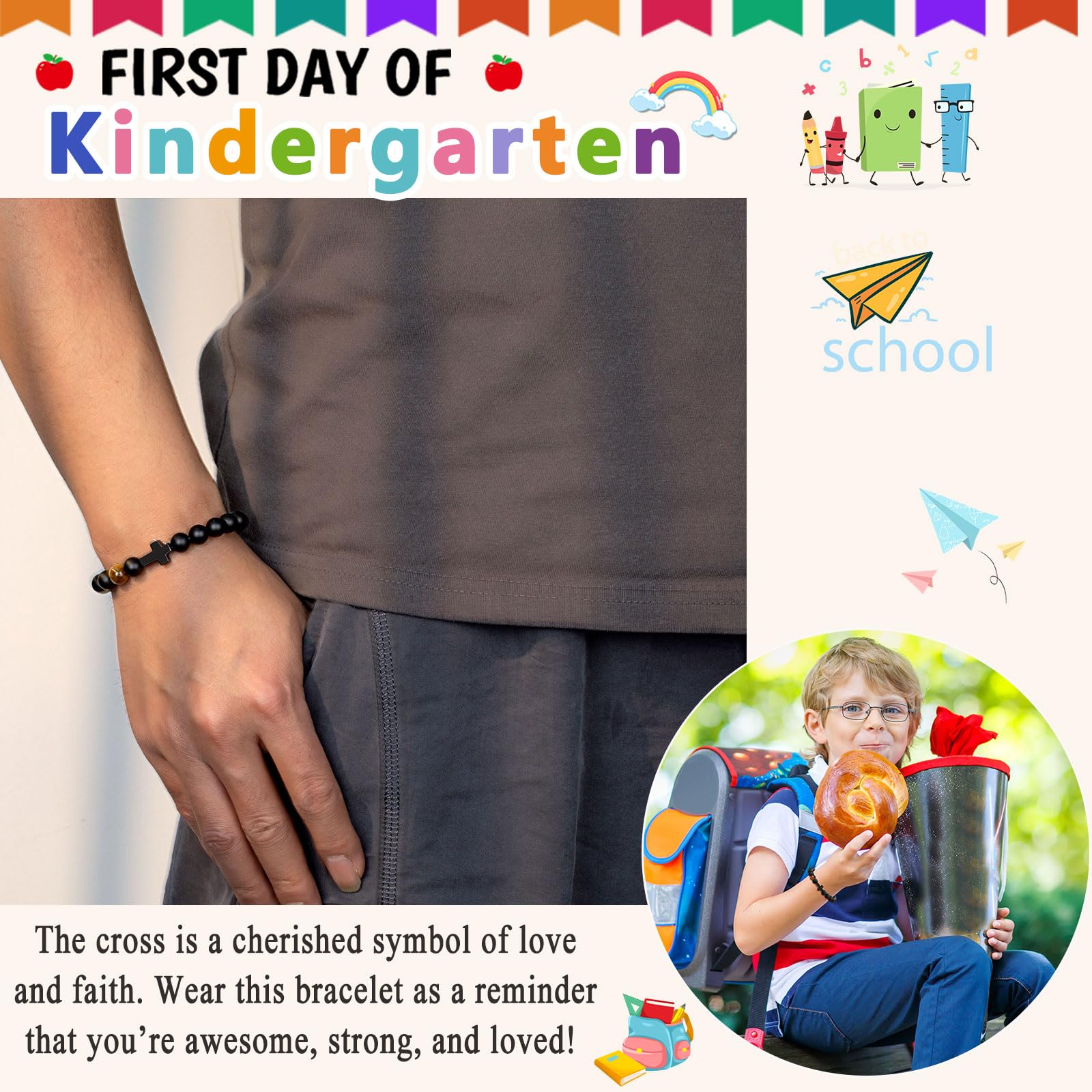 【Back to School Bracelet】--This anxiety separation bracelet with a blessing cross will give comfort and calm to your little one while encouraging confidence. Wear it and remind him that mom and dad are always thinking of them while school is in session.