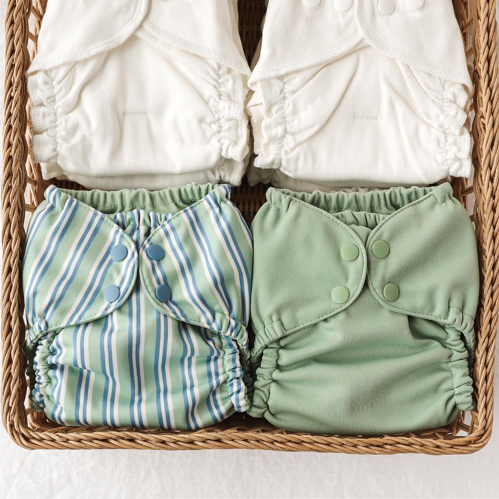 Grows With Your Little One: Trim-fitting and available in two sizes—Size 1 (7-17 lbs) and Size 2 (18-35 lbs)—with two rows of snaps that let you adjust the waist and legs independently for a just-right fit, every time. We recommend 6-8 outers for your diapering system.