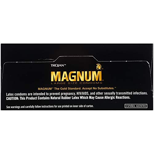 Enjoy larger than life pleasure with TROJAN Magnum Large Condoms. These lubricated condoms are larger than the standard latex condom, offering a wider, contoured shape for added comfort and a tapered base to ensure a secure fit. With silky-smooth lubricant for comfort and sensitivity, each of these lubricated condoms for men is made from premium-quality latex and is electronically tested to help ensure reliability. These large condoms also feature a reservoir tip for extra safety, so you can enjoy the moment without worry. TROJAN Brand Condoms reduce the risk of unintended pregnancy and sexually transmitted infections (STIs) while you play. Each box of condoms includes 36 TROJAN Magnum Condoms large size. Magnum: The gold standard. Accept no substitutes. TROJAN Brand Condoms are America's Number 1 Condom, trusted for over 100 years. TROJAN promotes a safe, healthy, and fun sex life. From condoms to vibrators to lubricants, TROJAN is dedicated to delivering innovative, high-quality products that offer pleasure and protection. Product is HSA/FSA eligible. When used correctly, condoms are unlikely to break. To prevent breakage, do not use condoms after the expiration date, keep in a cool, dry place, and use water or silicone-based lubricants for latex condoms.