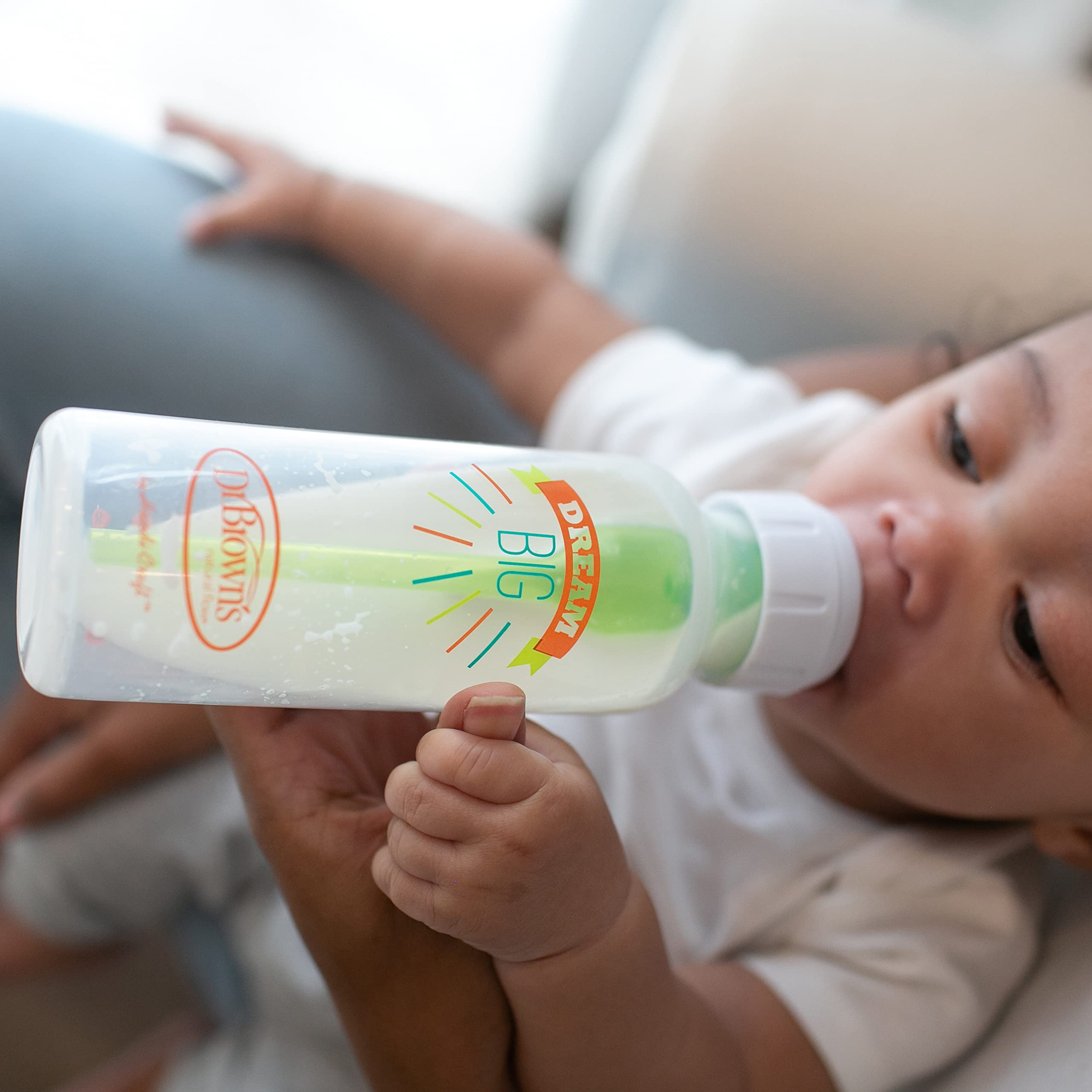 BOTTLE GROWS WITH BABY. Dr. Brown’s Natural Flow Anti-Colic Options+ baby bottle works best with the internal vent system in place but can be removed as baby’s feeding develops – no need to introduce a different bottle.