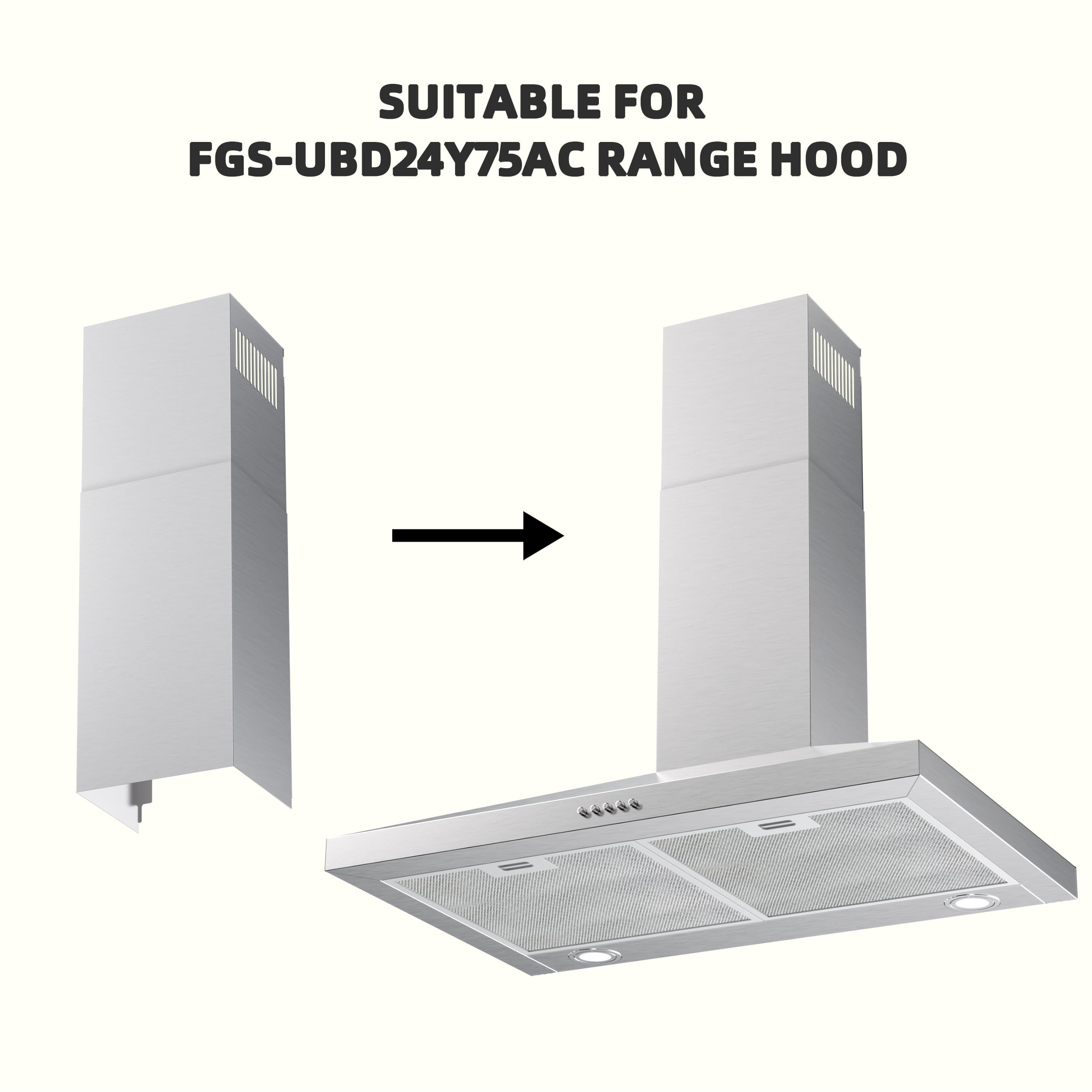 EXTENSION CHIMNEY COMPATIBLEļ¼This range hood chimney is suitable for FIREGAS range hood FGS-USD24Y75AC, FGS-USD24Y75CC, FGS-USD25Y75AC, FGS-USD25Y75CC, FGS-USD66Y60AC, FGS-USD66Y75AC, FGS-USD66Y790AC, and FGS-USD67Y75AC